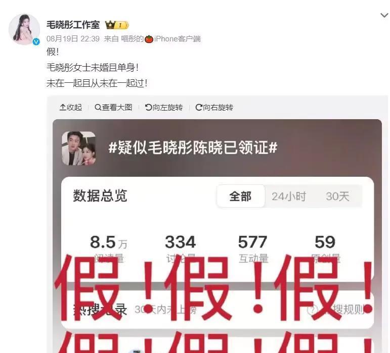 8月19日,“疑似毛晓彤陈晓已领证”直接冲上热搜第一。起因是有网友爆料一对一二线