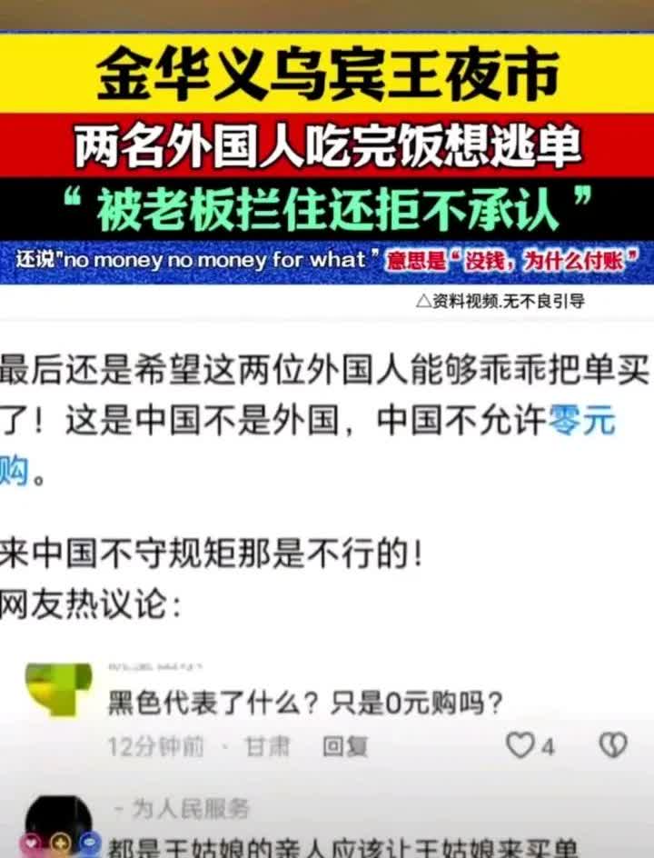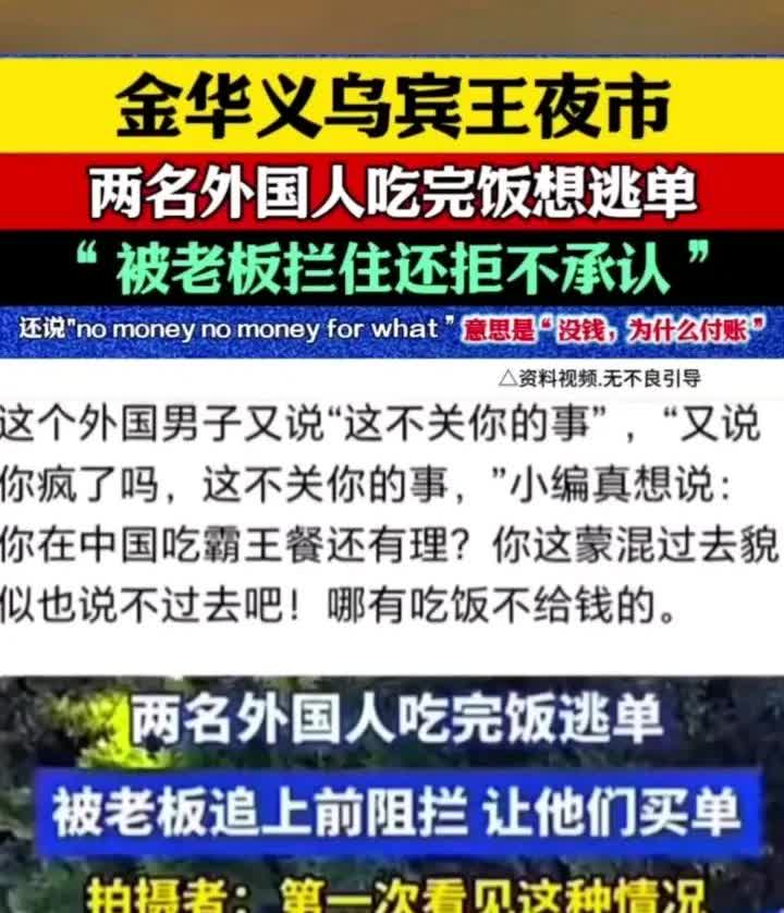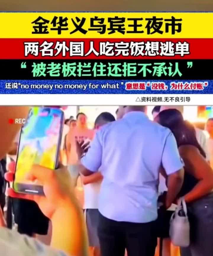 外国人到中国零元购被抓! 浙江金华义乌宾王夜市惊现外国人吃饭逃单,上演美国式“零元购”,外籍黑人男子被抓后气急败坏的朝路人怒吼:“这不关你的事”“没钱,为什么付账。”真的不可思议,外国人真的觉得自己是恶霸了吗?横行无忌、嚣张跋扈在中国行得通吗?中国是不是对黑人朋友太友好了?惯坏了吧!