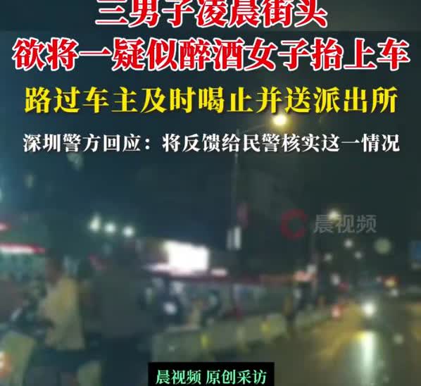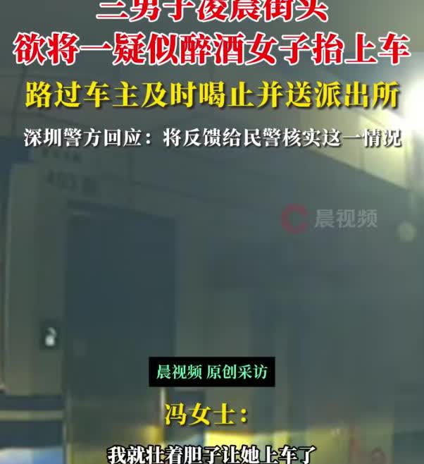 “美女,你认识那些男人吗?”广东深圳,女车主凌晨开车回家,看到一名醉酒女子被三名男子架着抬上车,而且衣服都已经撩起来,立刻就意识到不对劲,询问了得知四人根本不认识后,果断将女子送到了派出所,可想而知,如果这位车主出面,女子明天睁开眼睛谁在哪里可能都不知道呢 视频中,当时已经是凌晨,女车主冯女士发现路边有三名男性和一名醉酒的女性,其中两名男性架着一名疑似醉酒的女子将她拾到电动车的后座上,而女子表现出反抗,却又使不上力气 冯女士立刻就意识到,几人应该是不认识的关系,三名男子很可能是想要占便宜,于是主动靠近询问:美女需要帮忙吗?需要帮你报警吗?你认识那些男人吗 其中一名男子让她不要多管闲事,但女子意识到还算清醒,回答说:不认识,你赶紧带我走吧 冯女士听到如此回答,也不客气,及时喝止并将女子送到了派出所 说实话,不知道这名醉酒女子是否还记得当晚的情况,她是真的应该好好谢谢冯女士,因为她的做法不仅勇敢,还很聪明,她没有盲目的制止,而是先确认关系,再直接出手 当然了,这次是幸运的,但不见得每次都有人看到,还是要自爱,保护好自己 有时候,喝酒、聚会这些场景难免发生,但能少喝就少喝,真要喝得多,一定要让信得过的朋友送一程,哪怕是确认你上车前发个定位给家人,也是个保障