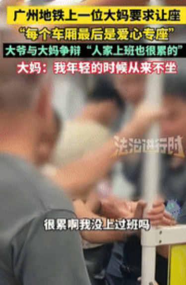缺大德了!”广东广州,一大妈上地铁后,要求女子将爱心专座给她坐,旁边大爷听到后,与大妈争辩:“人家上班也很累的”,谁料,大妈回复:“我年轻的时候从来不坐,都是站着的”,女子听到争吵声后的做法亮了,网友:让了是人情,不让是本分! "我年轻的时候从来不坐,现在老了怎么就没人让座位了呢!"大妈激动的说道,声音在广州地铁拥挤的车厢里格外刺耳,这一幕发生在8月早高峰时段,当时车厢内人潮涌动,一名年轻女子正坐在爱心专座上闭目养神,突然被这位大妈的要求打破了平静。 事情起因于这位大妈上车后,径直走向坐在爱心专座上的年轻女子,要求对方让座,女子身着职业装,脸上带着明显的疲惫,但面对大妈的要求,她只是微微皱眉,并未立即起身。 就在这时,旁边一位大爷看不下去了,开口为女子辩护:"人家上班也很累的,"这句话彻底点燃了大妈的情绪,她开始激动地讲述自己年轻时的"光荣事迹"。 车厢内的气氛瞬间变得紧张起来,大妈的声音越来越大,引得周围乘客纷纷侧目,有人开始拿出手机拍摄,有人小声议论,也有人试图劝解,而那位被要求让座的女子,始终保持着沉默,只是双手紧紧抓着手提包,指节因用力而发白。 无奈之下女子实在是听不下去大妈的指责,最后站了起来让大妈坐,这一幕被乘客拍下并上传网络后,迅速引发两极化的评论。 一位网友留言道:"我每天通勤两小时,下班时经常累得站都站不稳,如果遇到真正需要帮助的老人,我一定会让座;但如果是身体健康、态度强硬的老人,凭什么认为年轻人就必须让座?爱心专座不是道德绑架的工具。" 另一位网友则表示:"我们这代人确实经历过艰苦岁月,但不能因此就认为年轻人欠我们的,真正的尊老不是要求别人让座,而是互相理解、彼此尊重。" 这场发生在广州地铁的"座位之争"提醒我们,在建设文明城市的道路上,不仅需要完善硬件设施,更需要培养每个公民的公共素养和同理心,正如一位社会学家所言:"真正的文明,不在于我们是否遵守规则,而在于我们如何在规则之外,依然能够相互体谅、彼此关怀。" 对此你怎么看?欢迎大家在评论区留言讨论。