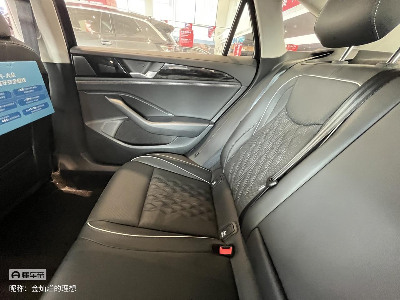 2⃣️内饰空间:新款迈腾的中控整体改动非常之大,为了迎合市场需求增加了副驾娱乐屏,中控屏幕也越来越大,并且屏幕采用怀抱式设计, 首先换挡方式的改变,新款迈腾放弃了原来的换挡杆,换挡方式改成怀档。 中控台全封闭的样子 打开后的样子 不得不说这个中控设计的是真丑爆了,对比上一代完全没有质感!迈腾这个位置原来是我最喜欢的位置,是我觉得提升整车质感的点睛之笔,现在给改得太掉价了,唯一的好处就是换挡杆位置变成了手机无线充。但是无线充那个位置完全可以设计出放两个手机的。 中控屏 这中控屏给人的感觉就是,你要大屏我给你升级了,但是换汤不换药,只不过是把原来的实体按键,给你换成触控的了。没有深度使用不做过多评价。 后排最满意的就是空间,我175cm调整好驾驶座姿后后排还有相当充裕的空间。而且后排中间的凸高也比老款低了。中间座椅偶尔坐个人也会更舒服一点。 但是整车座椅的用料给人的感觉就是廉价!和套上防皮的座套一样,一点质感都没有!前排座椅的包裹感还算说的过去,座椅整体软硬适中, 3⃣️后备箱 后备箱整体算是平整,右边凸高的地方厂家也给你做了置物格板。后备箱空间也足够大,满足日常用车需求毫无压力。 总结一下就是看外观我我心花怒放,坐进车里我欲哭无泪!