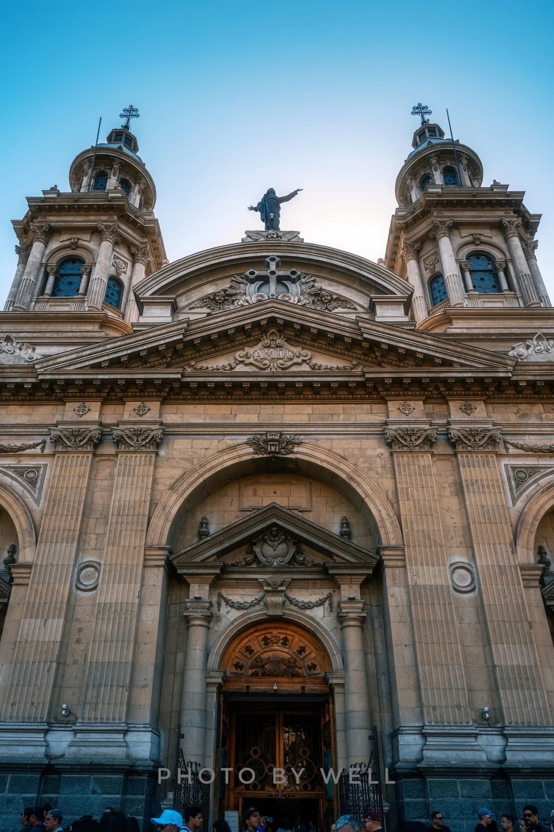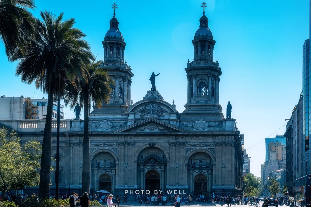 圣地亚哥主教堂(Metropolitan Cathedral)建在阿玛斯广场西侧,是智利规模最大、保存最完好的殖民宗教建筑。现貌历经多次地震重建(1748年竣工),融合巴洛克立面和古典内部风格。