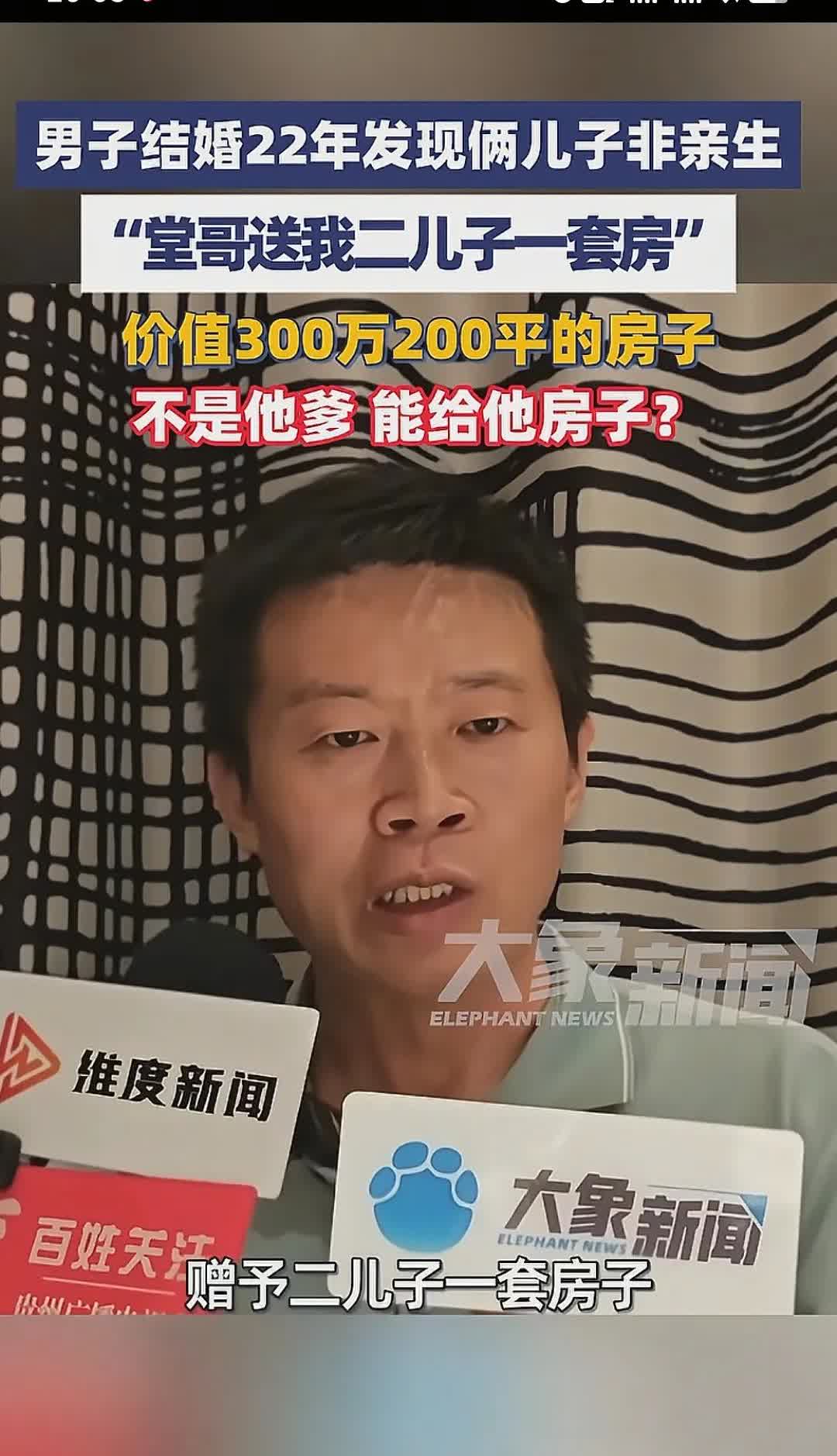 养了20年的孙子不是亲孙子,一手带大却形同陌路,七旬老人崩溃了。 男子50多岁了,大儿子21岁,小儿子11岁,却一个都不是亲生的,戴了20多年的帽子啊! 大儿子是妻子村支书的,小儿子是亲堂哥的,但凡有一个亲生的,都不觉得这么惨! 早几年男子离异,把房子都留给了两个儿子,自己几乎净身出户。 到头来,被儿子打,被儿子骂,难道你早就知道我不是你亲爸爸? 小儿子出生堂哥赠300万的房子。原来那是他亲儿子啊! 这是什么狗血剧情?真的有这么渣的渣女?让人看看是有多美啊?躲着不出现就没事了吗? 正义会迟到,但不会缺席!相信法律是公正的,还男子一个公道。 娶了坏女人毁三代,她直接让人绝代。20年的欺骗,20年的背叛,等着吧,苍天饶过谁。 聊热点