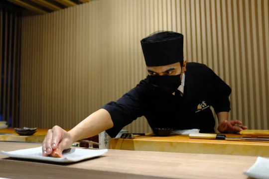 👨🍳 主厨的刀法也太精湛了吧,鱼片薄得像蝉翼,一落在米饭上的那一瞬间,真有点像看表演。