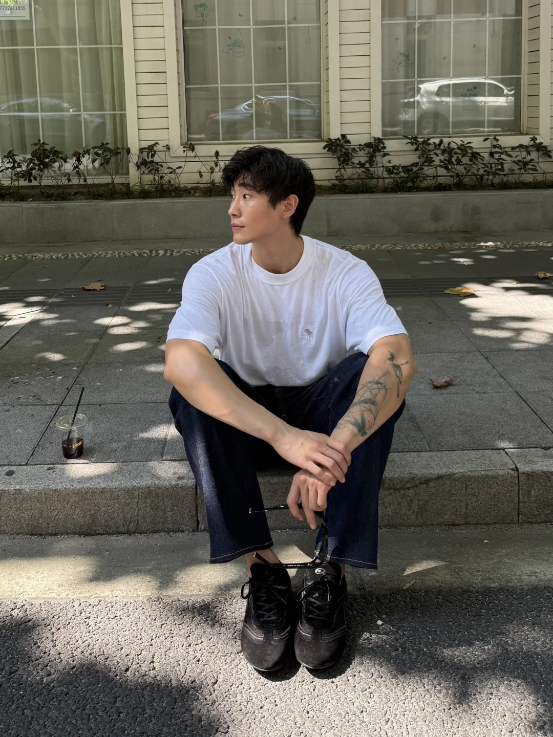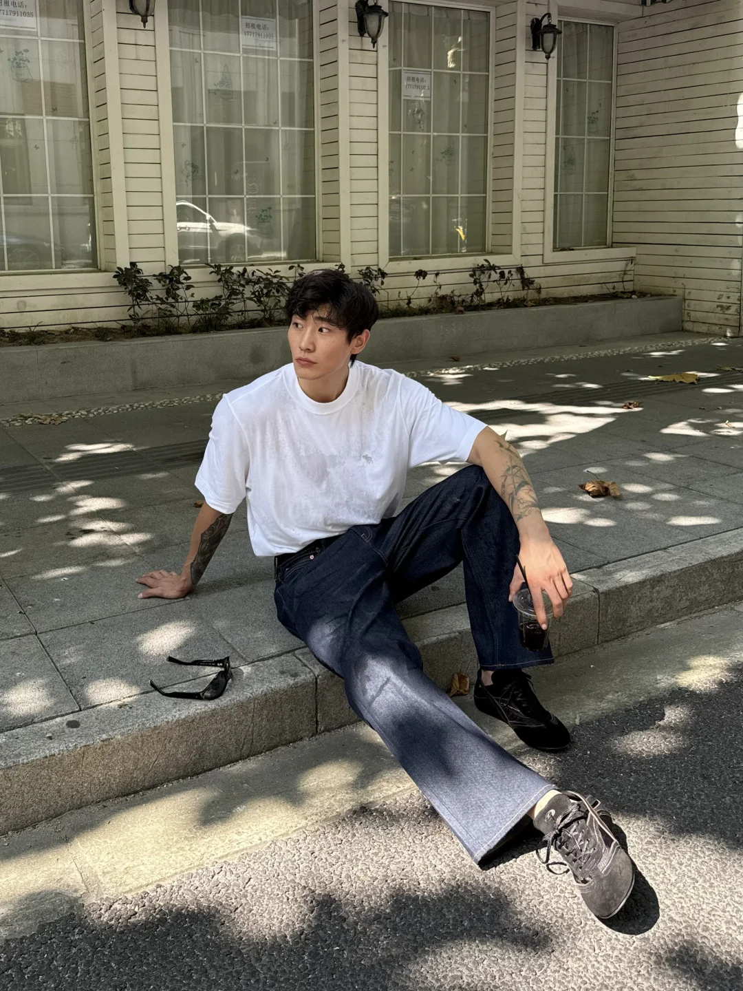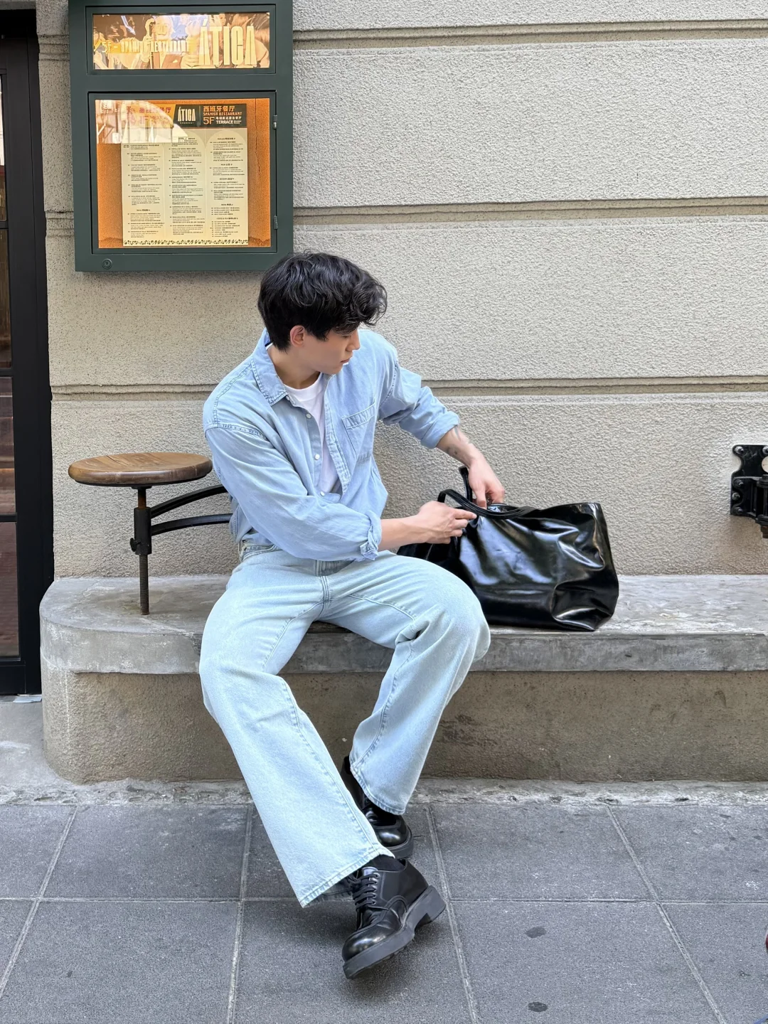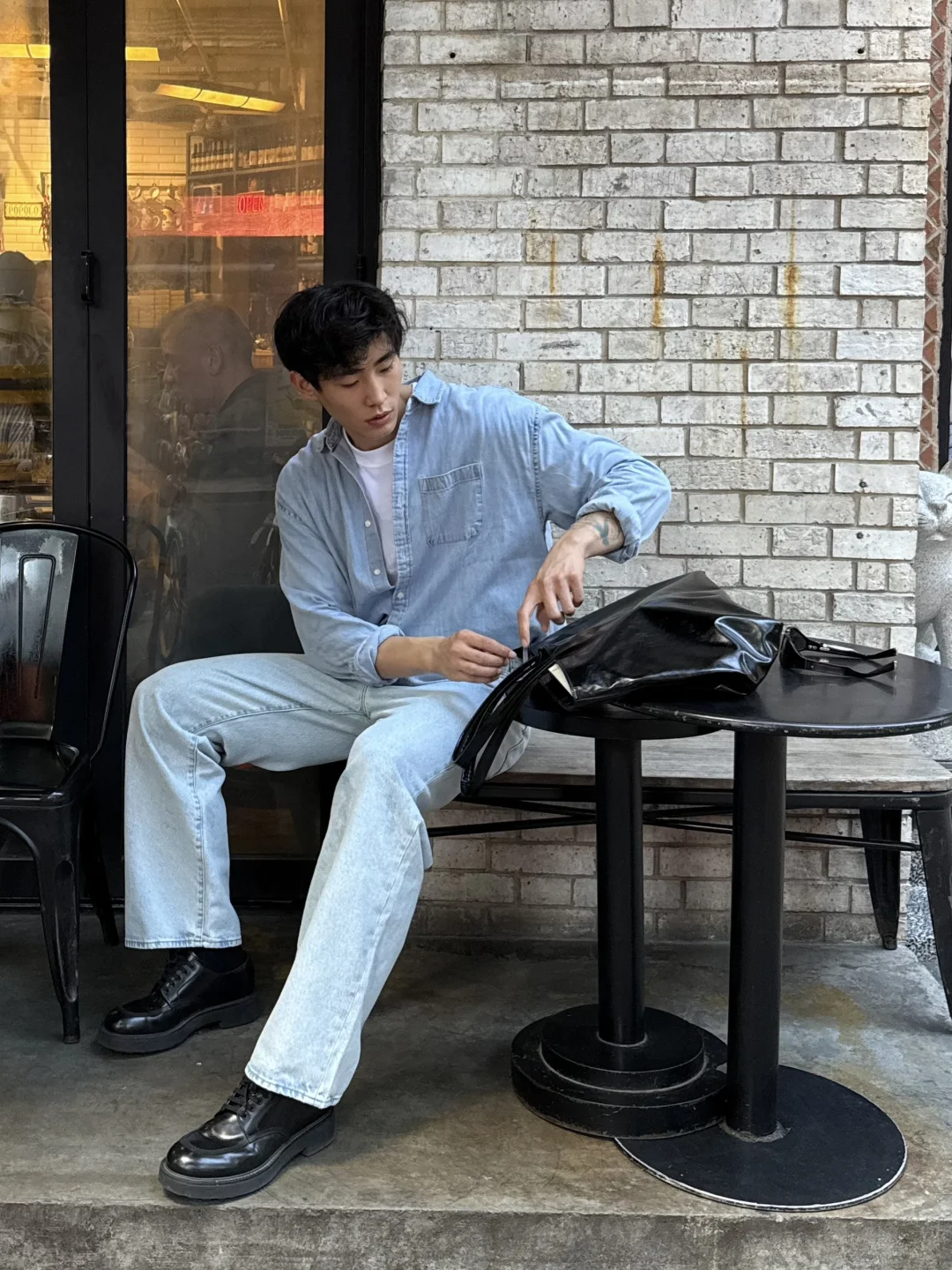 换上经典丹宁衬衫与水洗牛仔裤叠穿白色T或轻柔早秋卫衣