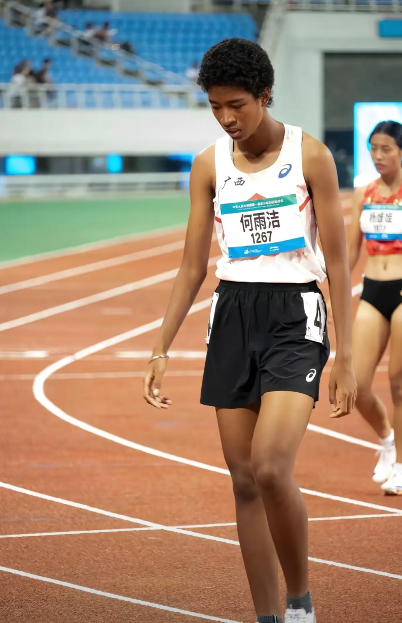 广西队|何雨洁。 何雨洁2009年12月8日出生,身高182cm,中非混血,母亲是广西梧州人,父亲是尼日利亚人。她是前女子800米全国纪录、前女子1500米亚洲纪录保持者冯艳波的队员,也算是刘德助的师妹。目前400米和800米都跑,几天前的沈阳青少年田径运动会上她创造了400米(59.06)和800米(2:14.19)两项最好成绩。