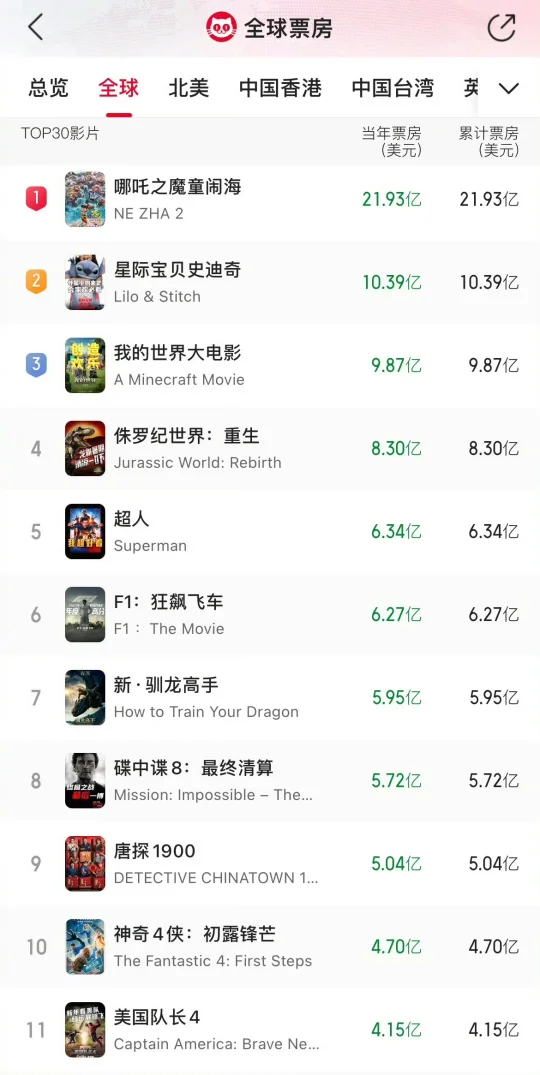 【冷知识】今年的漫威DC“超英电影”票房全部加起来,不如《哪吒2》(21.93亿)票房高! 《超人》6.34亿➕《神奇四侠》预计5亿➕《美国队长4》4.15亿➕《雷霆特工队》3.78亿🟰19亿➕?