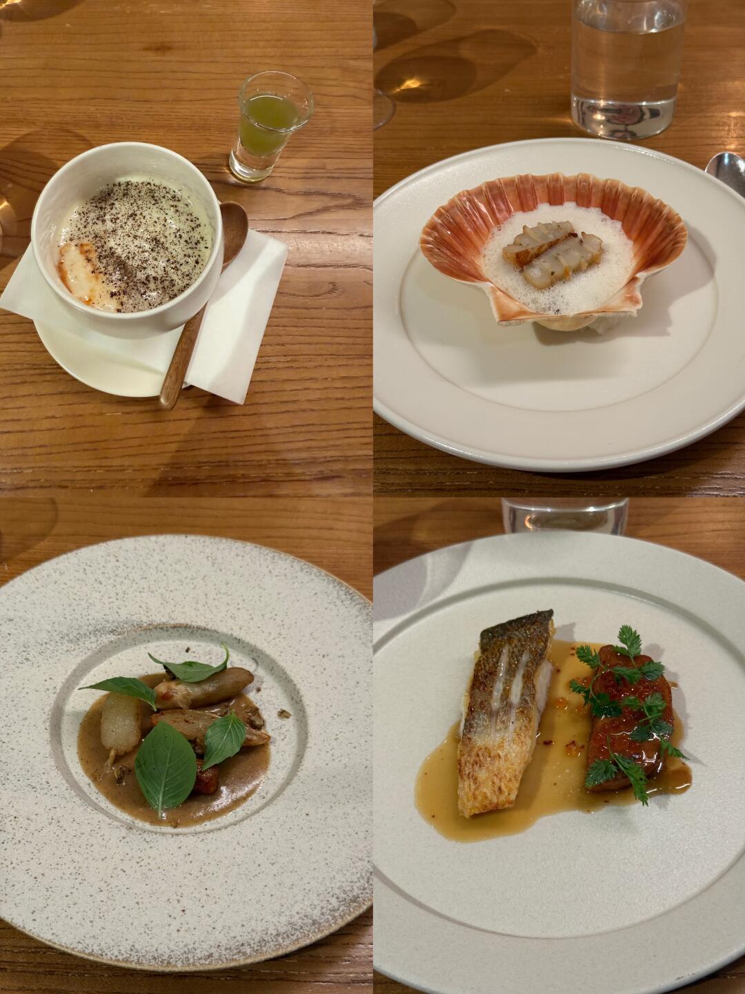 StudioAlandong八月最后一个菜单了 主厨要出去游学了 甜品意想不到的好吃 是杏子 前面的蒸蛋海鲜最爱