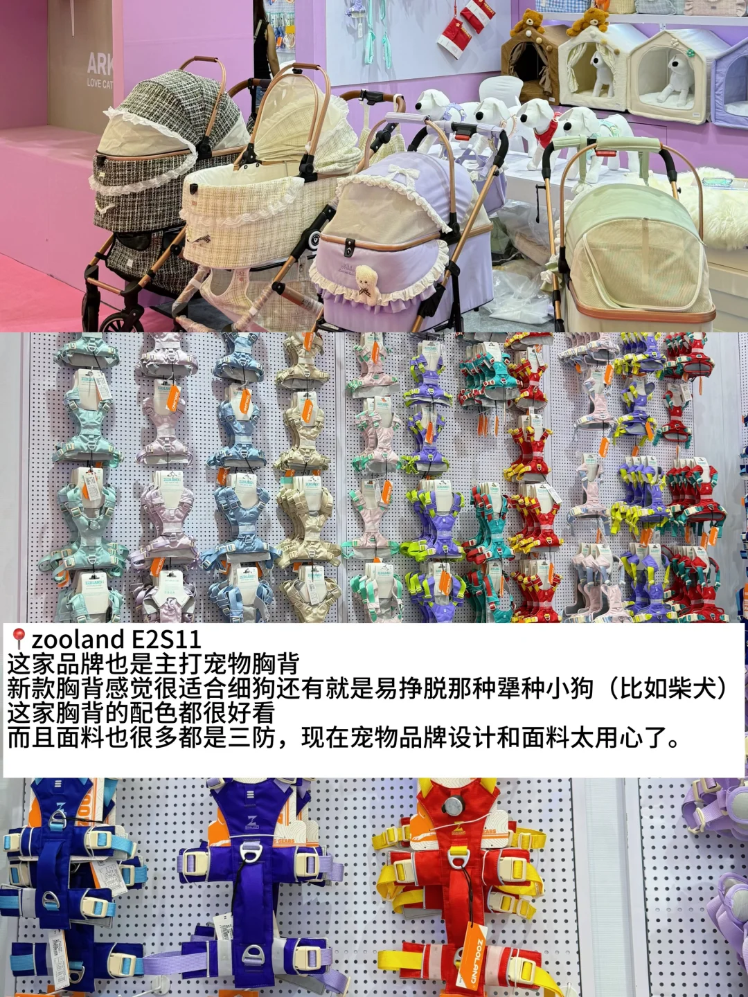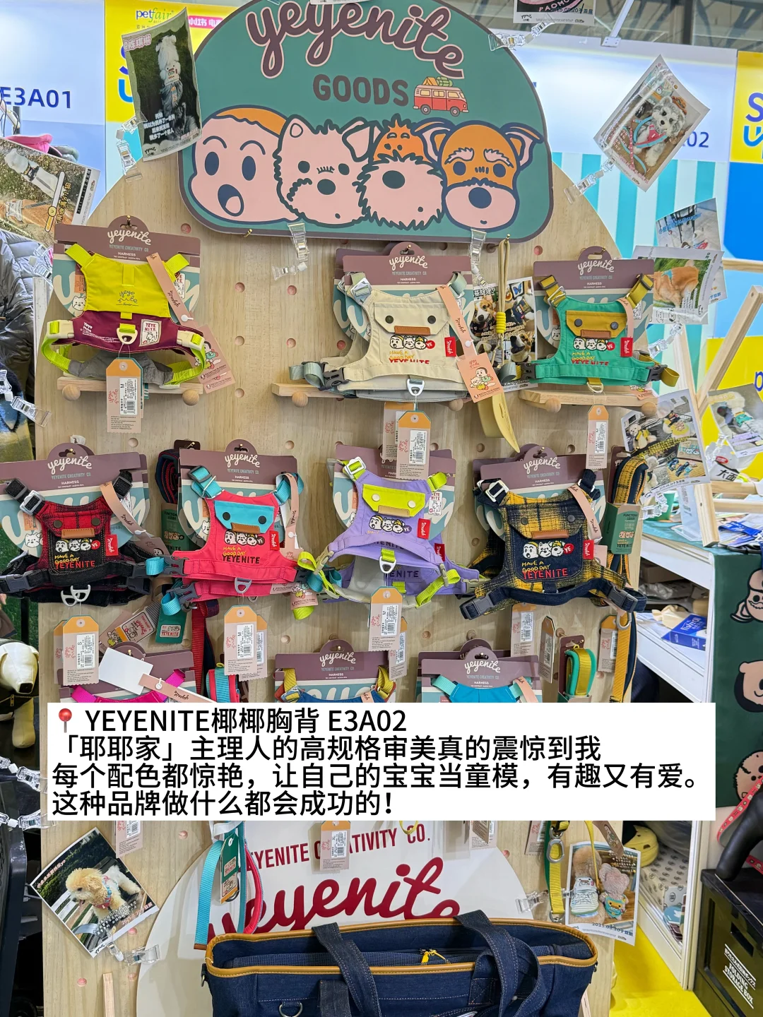 养狗三年,第一次参加亚宠展,要问现在哪个行业还在经济上行,感觉宠物行业算一个! 看到了宠物从业人员的爱心和创意,年轻和活力,感动cry😭 📍 YEYENITE椰椰胸背 E3A02 「耶耶家」主理人的高规格审美真的震惊到我,每个配色都惊艳,让自己的宝宝当童模,有趣又有爱。这种品牌做什么都会成功的! 📍Petzoo  W3C21 集合了潮流宠物用品多个品牌,类似宠物行业买手,所以质量过关,最重要的是工作人员也太热情了,好羡慕这种精神状态。 📍BLUEPORT青岸宠物 E2H61 一直都喜欢支持的品牌,主打户外出行穿搭,服饰品质高不夸张,但是穿起来每一套都好出片,秋冬新品更是兼具功能和时尚,尤其是宠物出行包,品类太全了。主理人形象深入人心,设计师的审美更是在线。小咩柴犬好适合穿BP,虽然他们家店长狗子是雪纳瑞,但是好多犬种都有合适的服饰和出行包。 📍zooland E2S11 这家品牌也是主打宠物胸背,新款胸背感觉很适合细狗还有就是易挣脱那种犟种小狗(比如柴犬),这家胸背的配色都很好看,而且面料也很多都是三防,现在宠物品牌设计和面料太用心了。