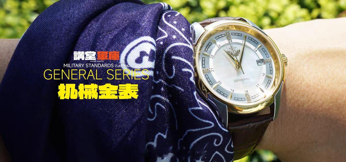 讲堂军库将帅系列金表已上线,GENERAL系列机械金表,表壳镀金,自己日常商务使