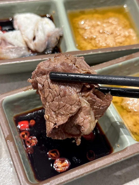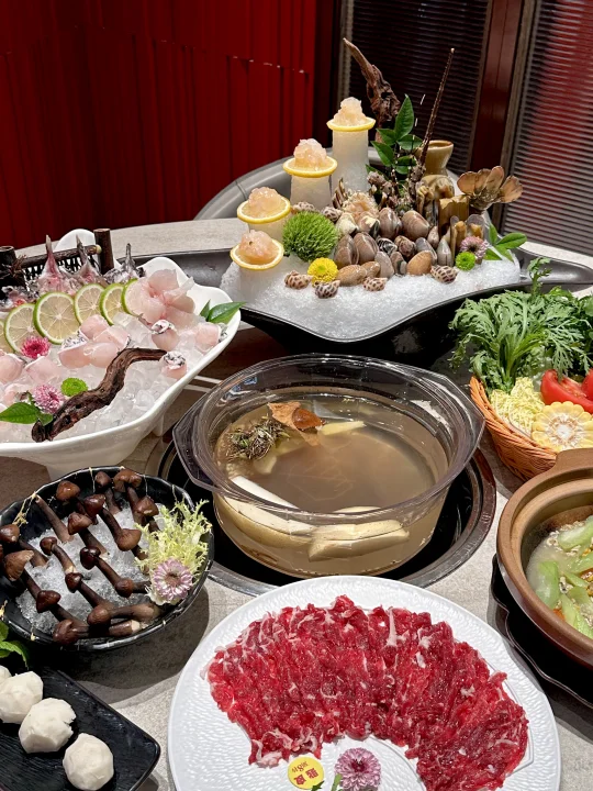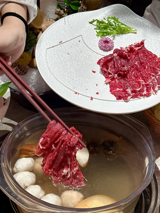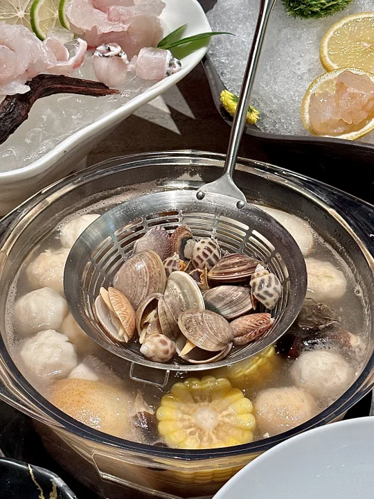完完全全就是吃食物本身的味道! 从进门开始的海鲜明档到火锅锅底🍲 每一样都吃得明明白白,一整个健康又新鲜💯 海鲜拼盘🐚种类超级丰富! 第一次在火锅里涮贝壳类的海鲜, 竟然完全不违和😍 加上一份Q弹墨鱼丸🦑和鲜切黄牛肉, 不着急吃得满足而且热量也不高! 难怪中午去也几乎满座,真的超级适合夏天了!