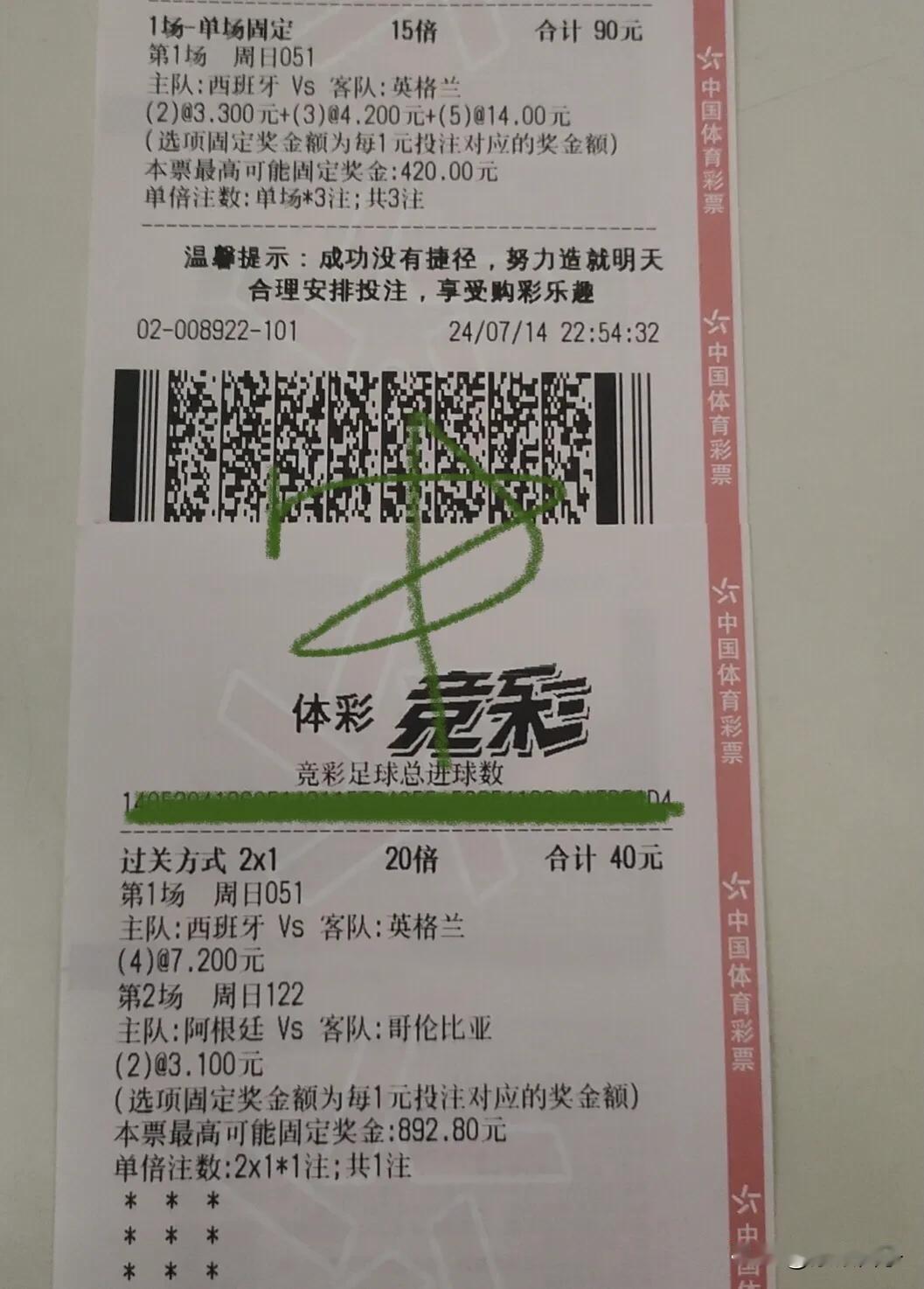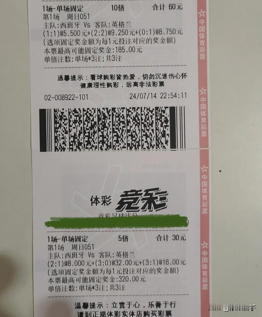既然有人说我的票可以撕了!这可是我重金买了英格兰夺冠啊!现在打算睡一下三点起来看球赛,兄弟们你们都买西班牙夺冠吗?🏆各个都买西班牙夺冠!就我一个另类买了英格兰,看样子今晚看球不在一个频道了!那几位跟我买的一样啊!1:3 4球