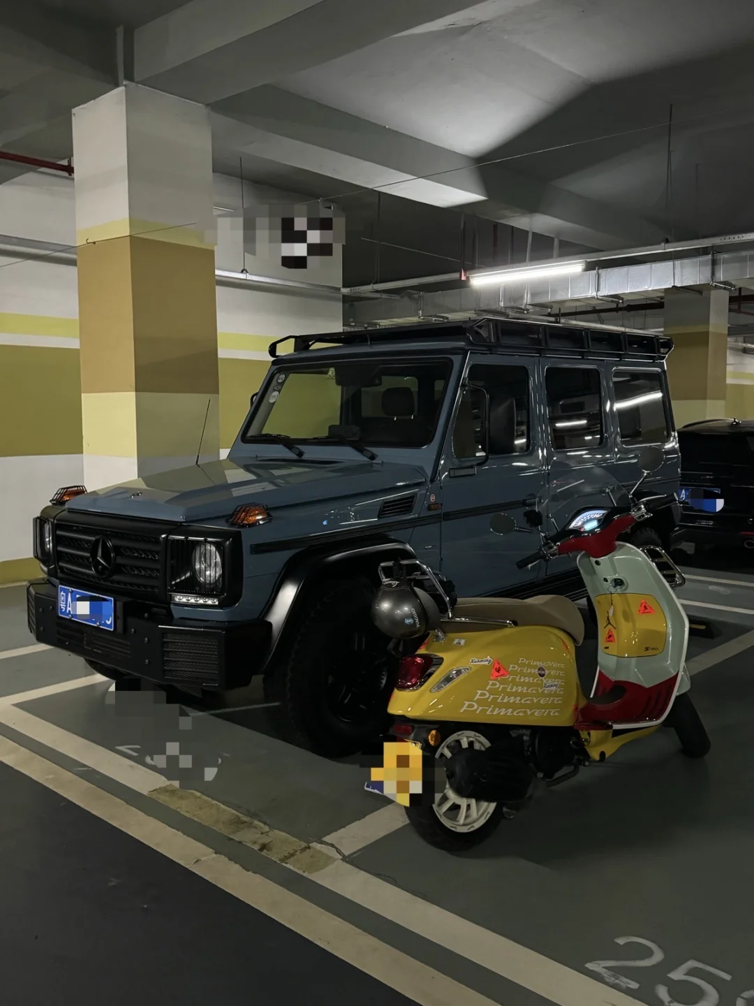 G350 d 柴油 (6缸带涡轮) p的意思 professional专业版 奔驰G原厂最美的颜色 陶瓷蓝 原厂标配的越野套装加持 手摇车窗 绒布座椅 看似简陋 这货才是真的硬 这才是真正的专业版 格子内饰 徽章扶手 三把遥控钥匙 这才是专业版中的限量版Limted Edition