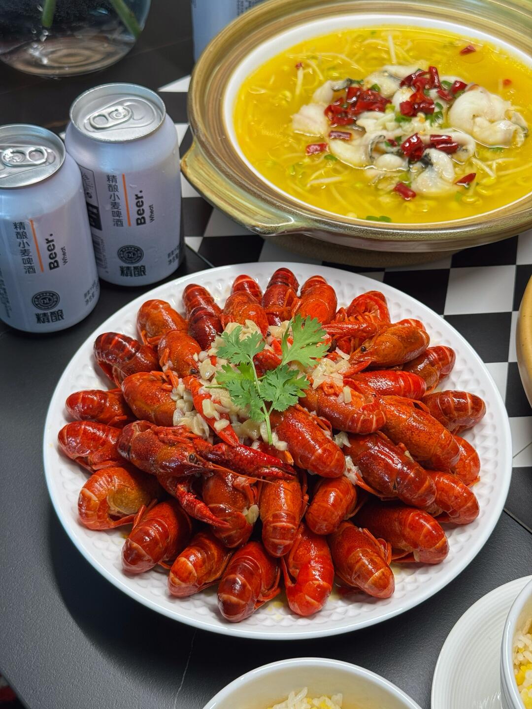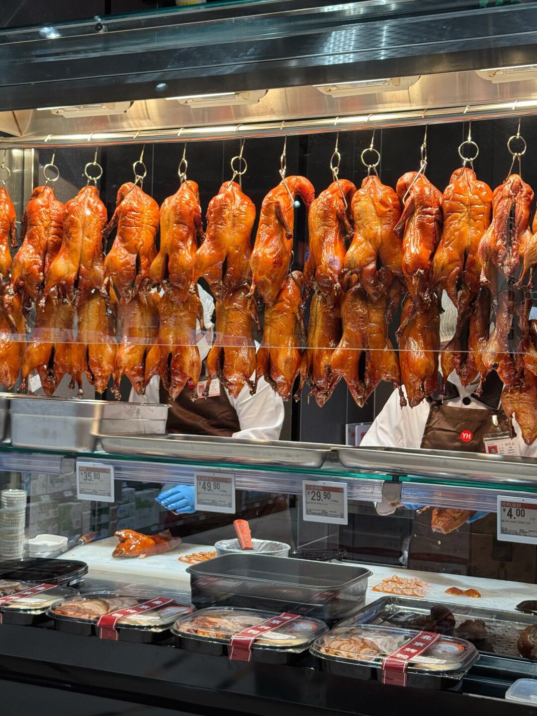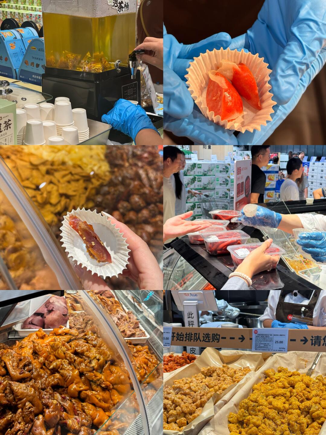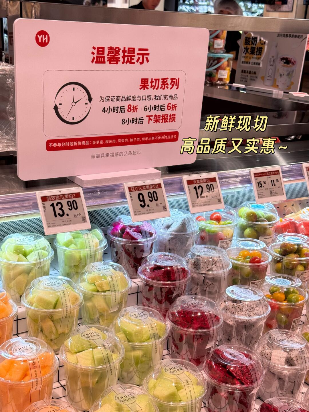 除此之外,现场熟食和加工区也是热闹非凡。现制的小龙虾和当日现烤的烤鸭、寿司等直接买回家就能大快朵颐,还有贴心的试吃服务,就算不买东西也能让你空肚子去吃饱再回家[哇R]据说熟食类在晚8点后就会进行日清打折,现切水果也是遵循“468原则”,4小时八折,6小时六折,8小时下架 ,不仅帮消费者省了钱还保证了食材的新鲜~👍🏻