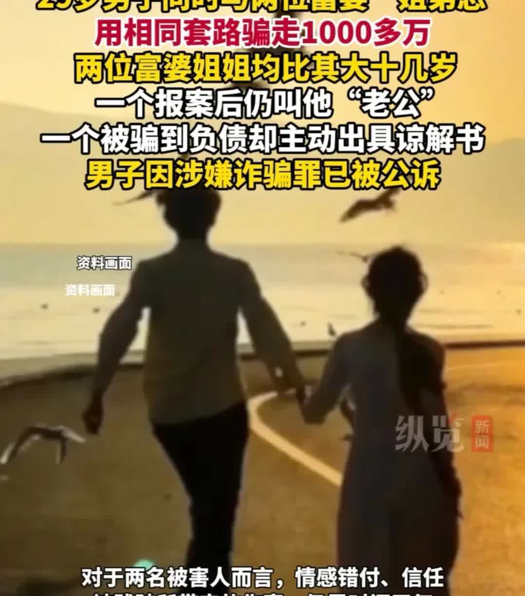 29岁男子同时与两位富婆“姐弟恋” 用相同套路骗走1000多万 两位富婆姐姐均比其大十几岁,一个报案后仍叫他“老公”,一个被骗到负债却主动出具谅解书 男子因涉嫌诈骗罪已被公诉 高手[赞],还是两个,一起一千多万,报案了还叫老公[捂脸]为什么我就遇不到?我也想要富婆,我并不想要富婆的什么房子,车子我只要求一天给我100块就OK了,我要我干啥都行[笑哭][笑哭][笑哭]这哥们比前无古人后无来者空前绝后[龇牙] 这小子实力派呀,这也可能[捂脸]干活好,然后嘴甜,让她们欲罢不能。让我说有些女的是真不懂事吗 年龄都快赶上我妈了 做的事还不如20多岁的小姑娘 ,[捂脸]让人一骗就是1000多万,脑子什么做的?小伙这比跑外卖强多了[捂脸],小鲜肉们不要跑外卖,去找富婆[抓狂](消息来源于《纵览新闻》)