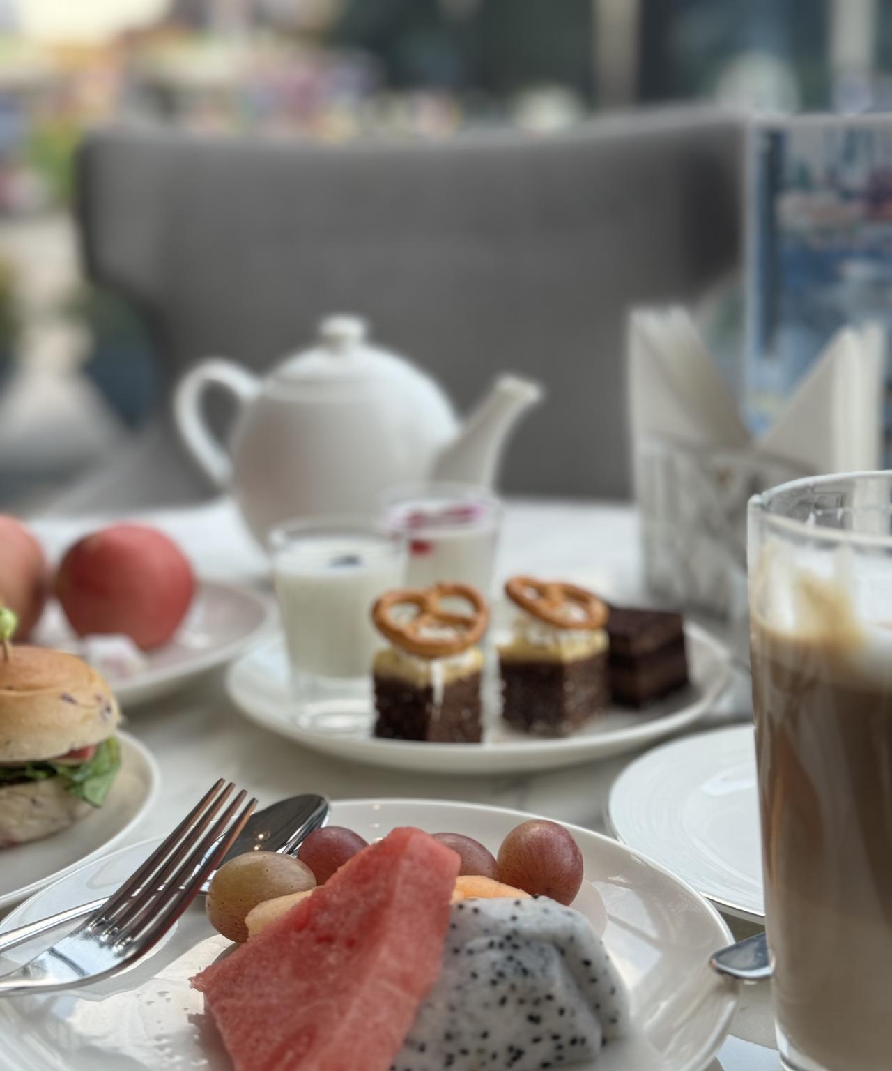 终于下雨了…… 其实不能说凉快,只是下午开始没有明晃晃的太阳了。下了一丢丢的雨,依然还是那么热。上午9点多,看看我们徐汇这温度[笑哭] 对于吃我是认真的,即使这么热的天,自己剥虾仁,今天的虾特别大,剪下的虾头熬虾油,烧高汤,没忍住下了口面,鲜的来。 豆妈从加拿大看女儿回来了,约着碰个头,她找的地方。这酒店的自助下午茶,照片拍出来好看,但品质都so so。价格也不算便宜,如果是我,宁愿单点咖啡蛋糕,这家的咖啡也很难喝,可能我要求比较高,不过胜在环境还比较安静。 虽然我好不容易减下来的体重,不好吃的甜点我是宁愿不吃的。但是同学一片好心,拿了好多,所以我还是全部吃完了。生活中我从来不给人难堪,也不会说别人不喜欢听的话,更不会强行输出自己的三观。也许有人说这是虚伪,也许有人觉得干嘛要委屈自己迎合别人。但我年纪越大越随和,也可能是经历了队友的事情,对很多事情看淡看开了。 宽容他人,做自己,也让别人做自己。 有点自夸,但我真的努力在这么做。