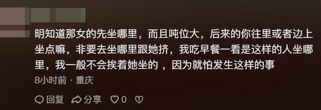 甚至还有人觉得“年轻人也有责任”,明知道空间紧张还非要坐那里,换个位置不就行了?主张“退一步海阔天空”。