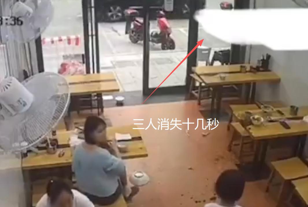年轻人见状起身,追在后面试图拉住女子,他的父亲也瞬间反应过来,两人赶紧追出去。