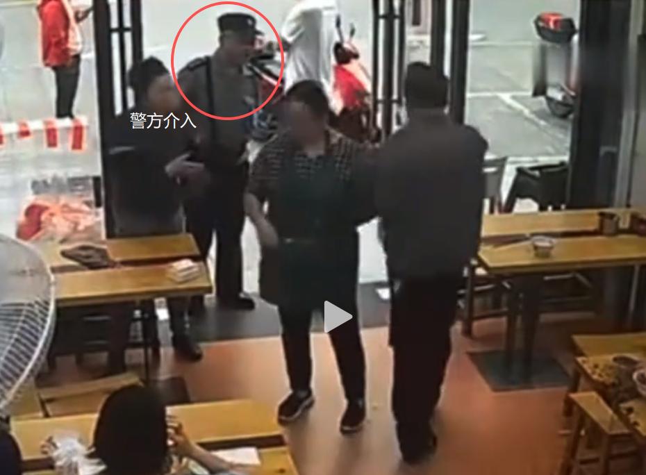 大概在镜头外僵持了十几秒后,女子好像“突然放弃了反抗”,往店门口走去,捡起自己掉在地上的手机。