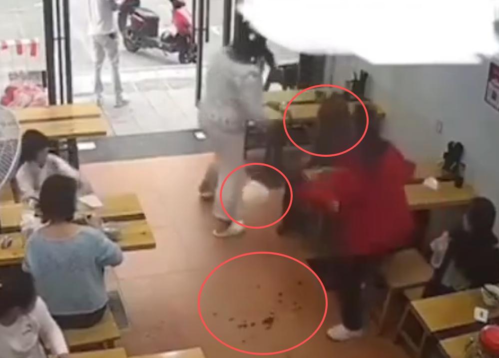 反倒是店里的其他客人反应过来后,有人帮着清理地上的汤汁,有人递纸巾给受伤的年轻人,老板娘也赶紧拿湿毛巾给他擦头上的残留物。