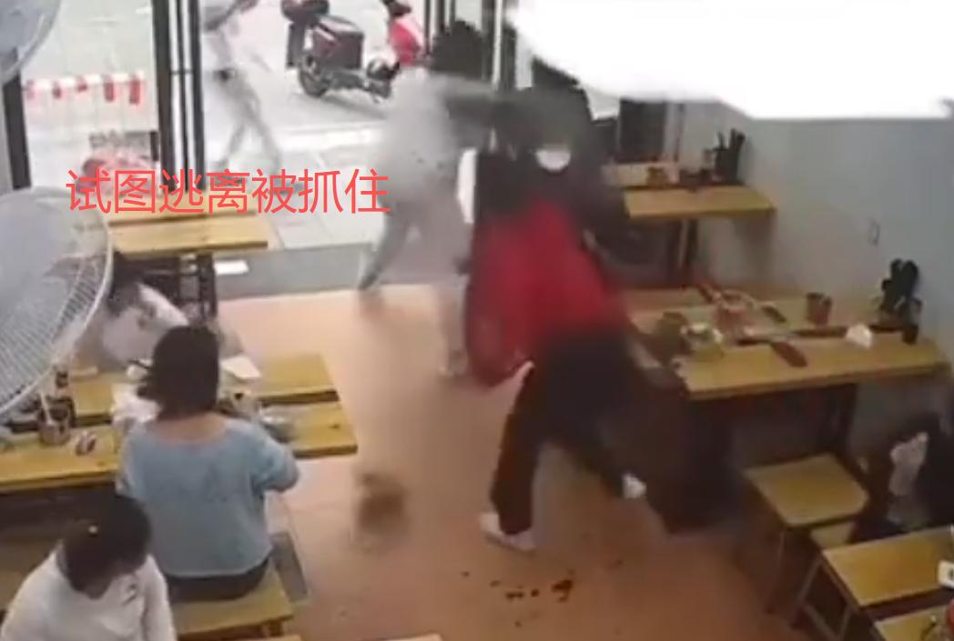 女子做完这个泄愤动作后,大概也是知道了后果很严重,转身就往外跑,想趁乱离开。