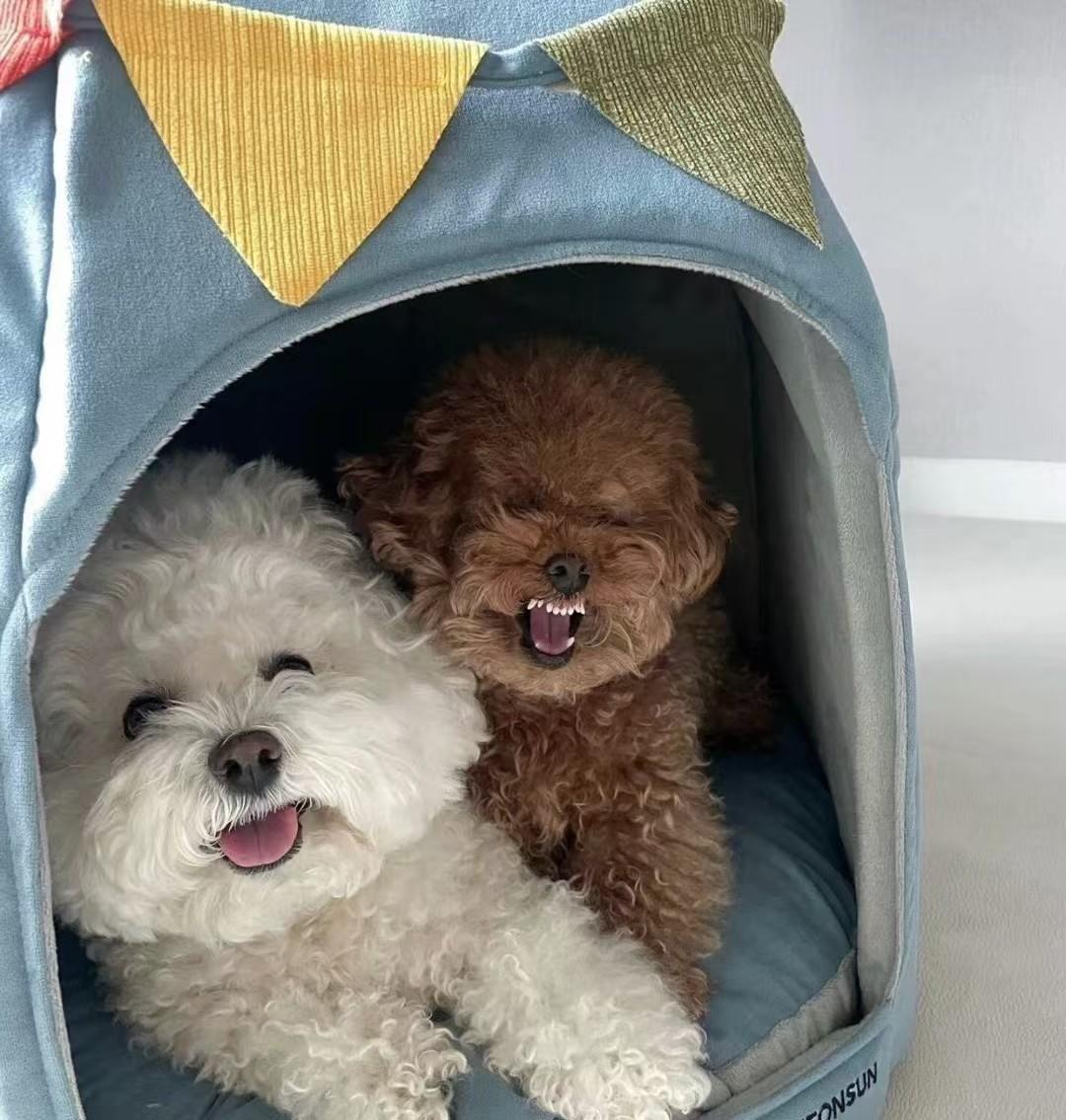 #晒晒我家萌宠#有房子住了,两只狗狗恩爱又开心[呲牙]
