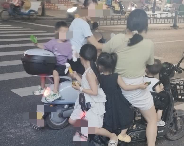 都说一拖二的日子 不是人过的日子 看看这位身材娇小的妈妈,一拖三,前面一个,后面载两个,不敢想象她是怎么熬过来的。都说母爱是伟大的,硬生生的把弱女子练成了女汉子。 现实生活中有太多太多的这样的女子了,为母则刚。