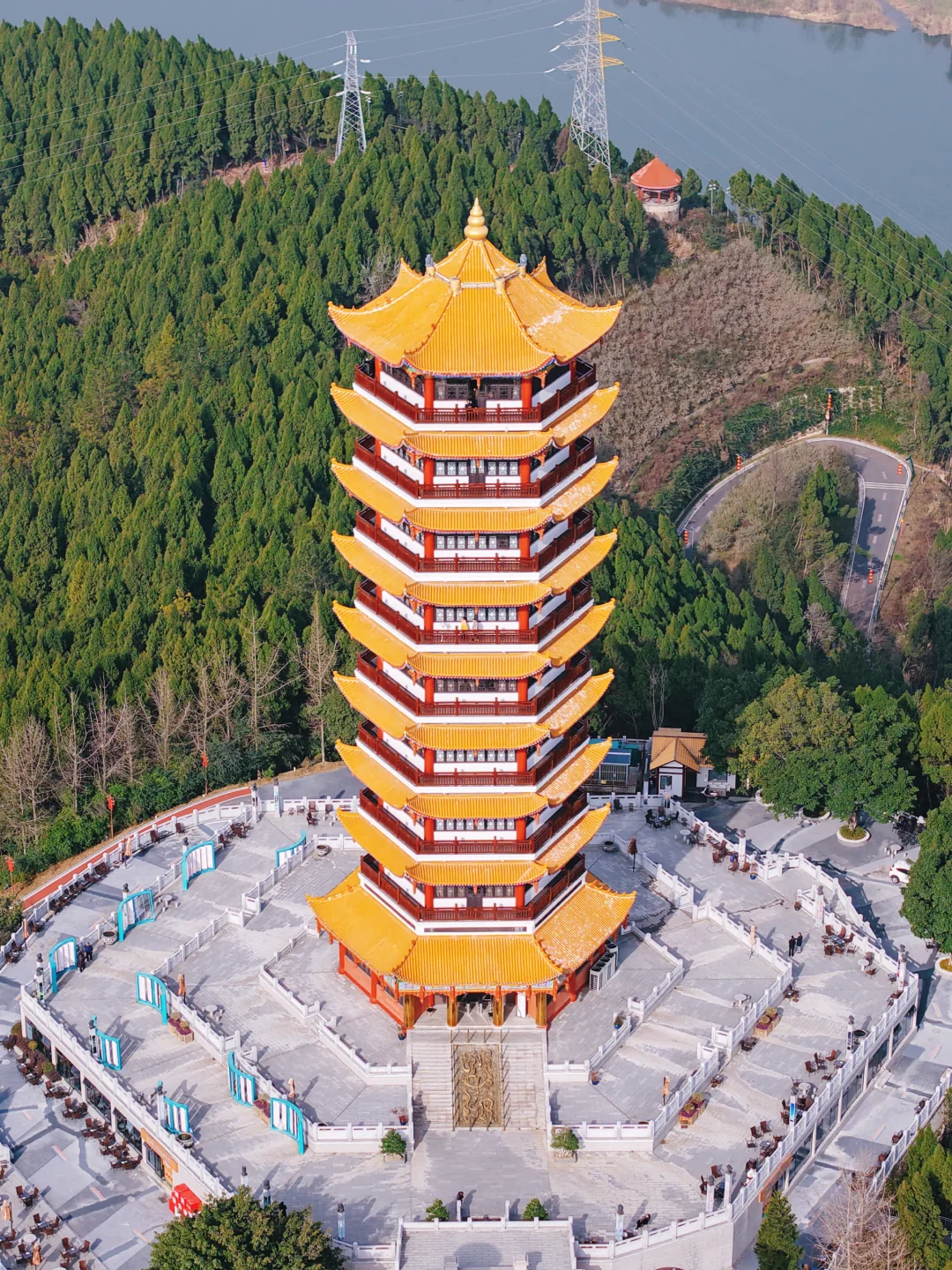 位于花果山之巅,可以登高望远,俯瞰射洪全景,与它相望的还有一座壮观白塔。