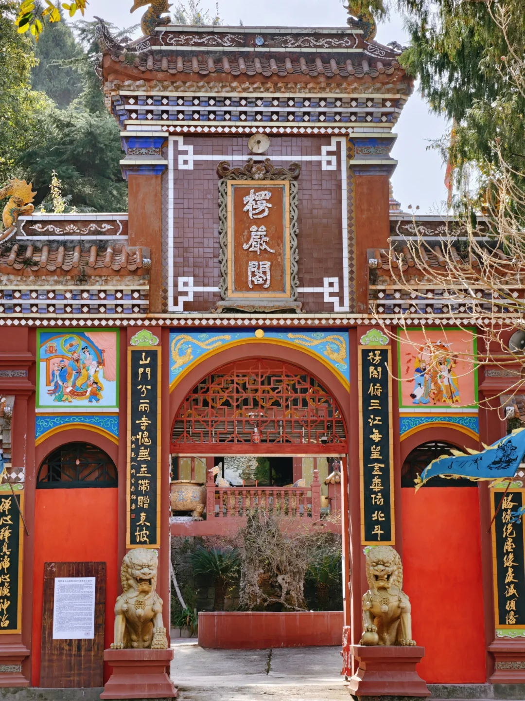 蜀中道教圣地,依山势而建,雕梁画栋,色彩明艳,其中“人有千算,天只一算”很有意思。