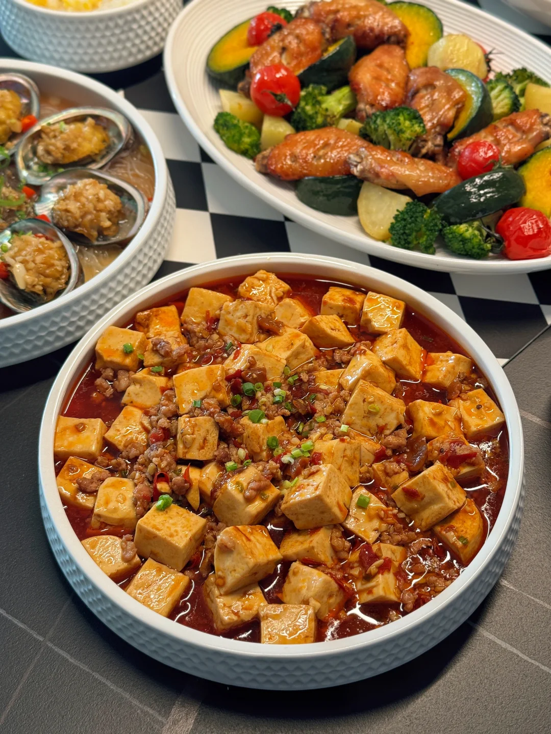 跨年夜准备好跟谁一起过了没?跨年家宴也要提前备起来啦,精心准备一桌漂亮饭邀请朋友们一起开心的跨年吧~ [彩虹R]今日菜单: 香辣水煮鱼片 时蔬烤鸡翅 炸春卷 麻婆豆腐 蒜蓉粉丝蒸鲍鱼 素什锦 糖醋里脊 红烧狮子头