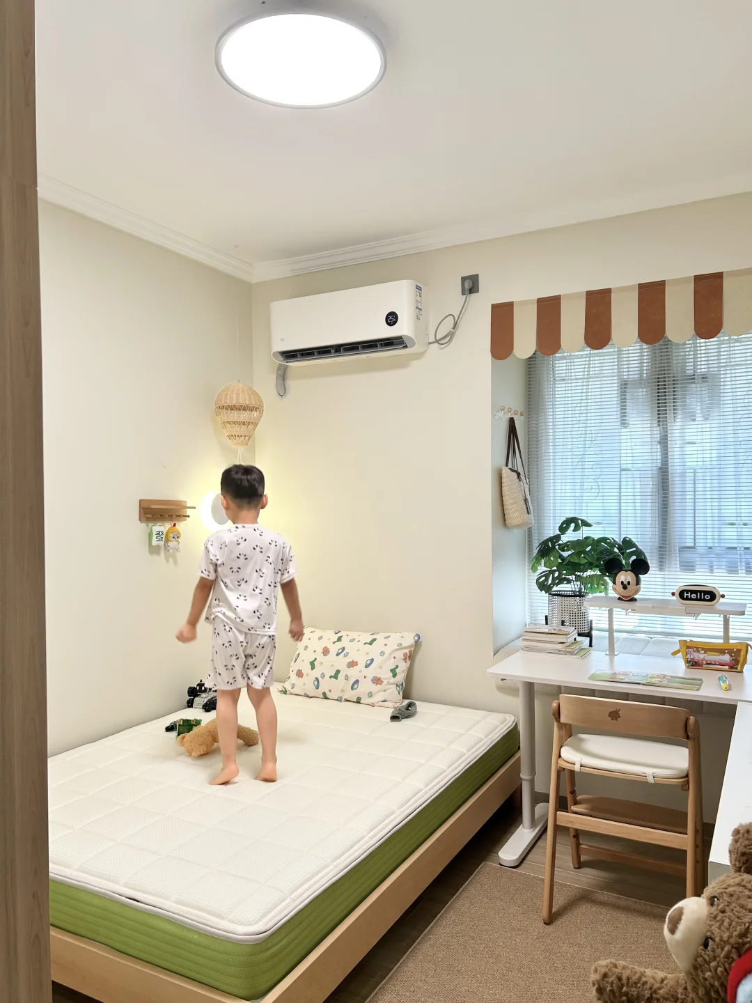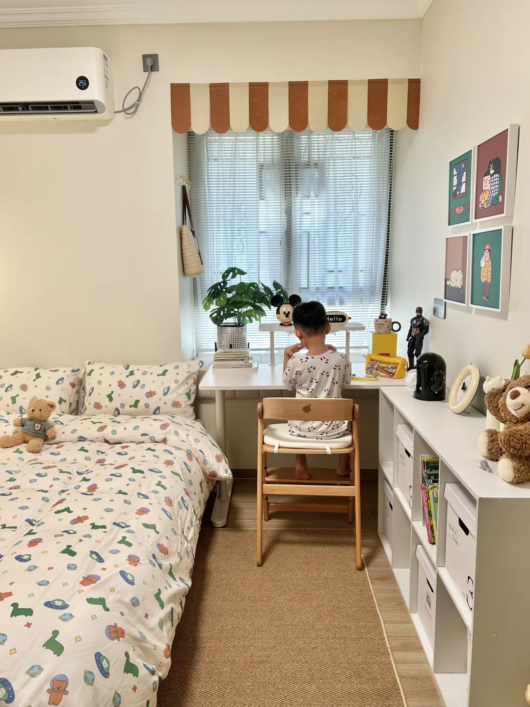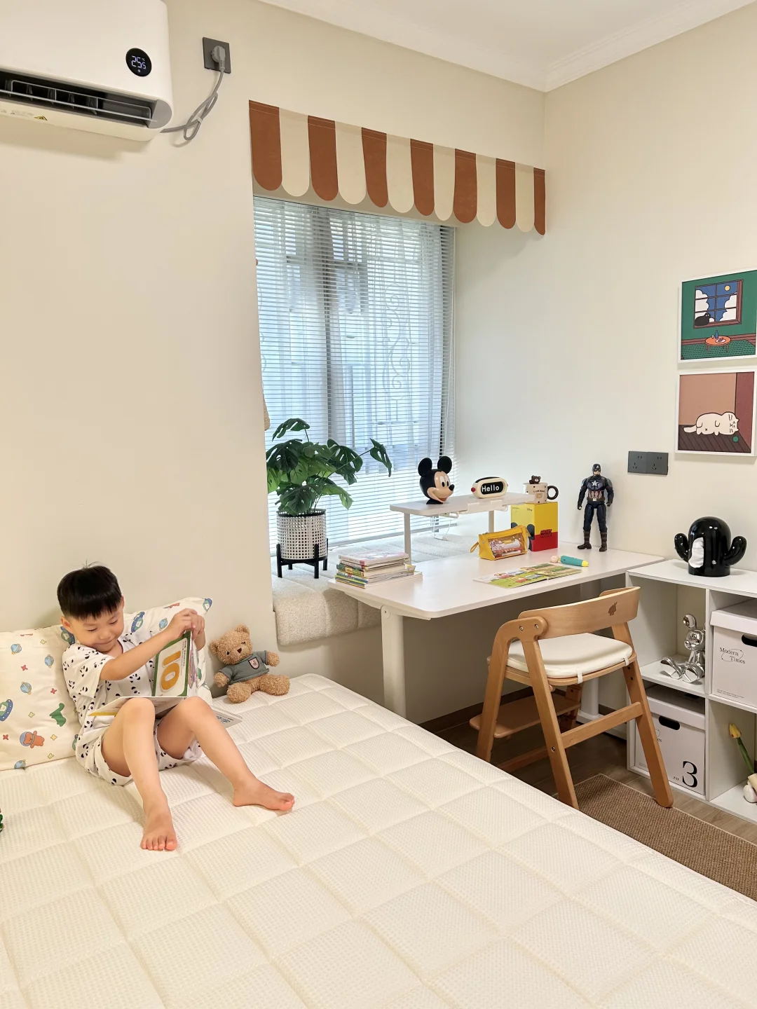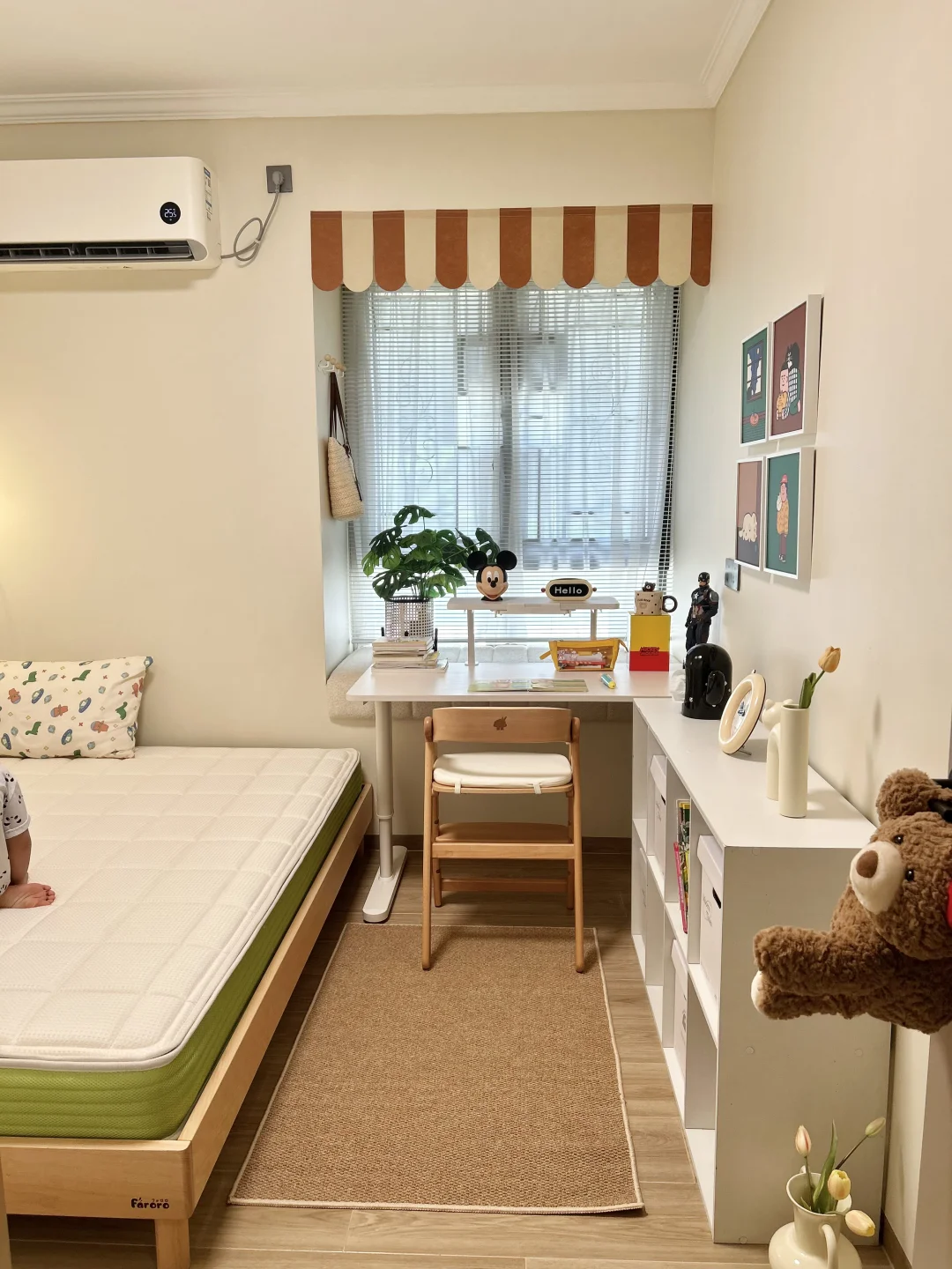 家里儿童房也就8㎡左右,没跟风做固定榻榻米,想着孩子长太快,还是这种灵活布置的成长型更实用~