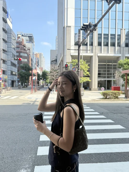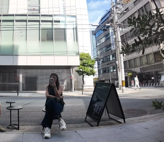 离开大阪的那一天早上 偶遇一家座位在马路边上的咖啡店 背对马路喝咖啡 很酷!