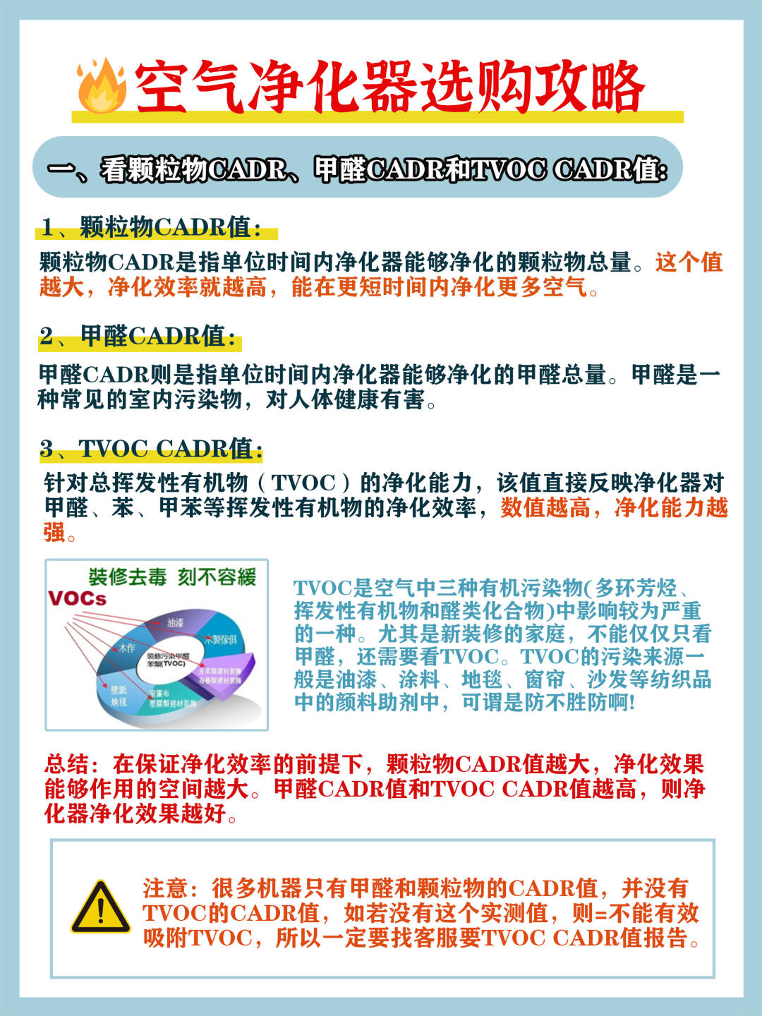 ✅一、看颗粒物CADR、甲醛CADR和TVOC CADR值: