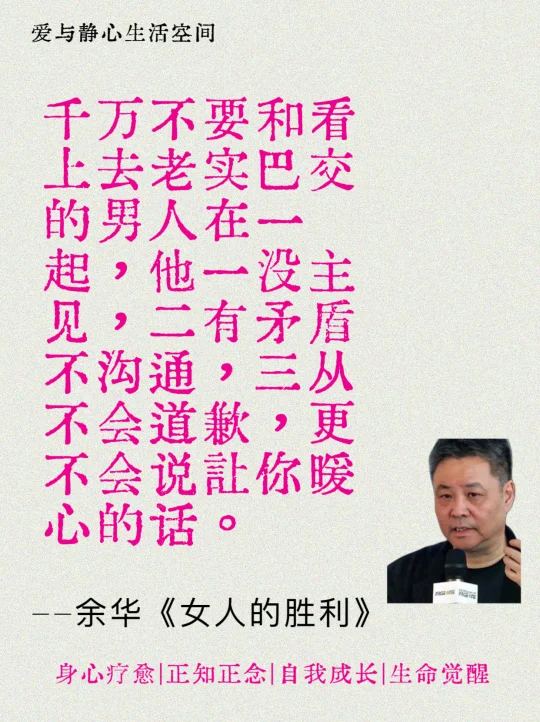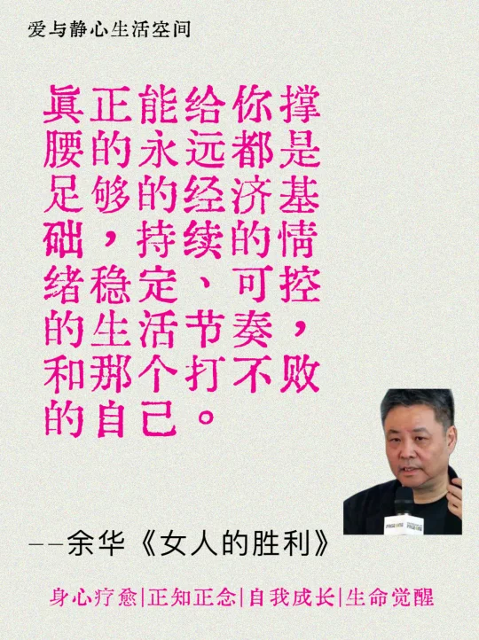 余华:真正能给你撑腰的,是足够的经济基础、持续的情绪稳定、可控的的生活节奏,和那个打不败的自己。