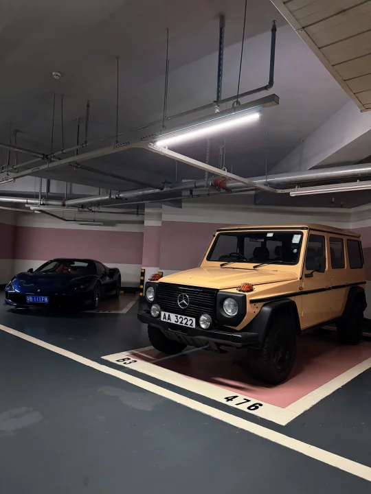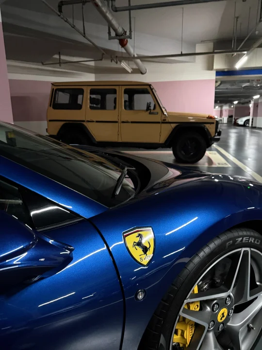 一边是意大利超跑近800匹马力的F8 一边是德国方盒子老家伙 F8的液晶仪表盘可以渲染彩虹弯道 280GE的机械仪表还在用指针颤抖提示油量 科技让驾驶变成电子游戏 而经典则坚持让人亲自拧动钥匙聆听引擎的咳嗽声 四十多年的进化论在此刻变得具象 或许汽车文明的终极浪漫从来不是淘汰 而是让风驰电掣的未来和铁骨铮铮的过去,永远有并肩停靠的停车场