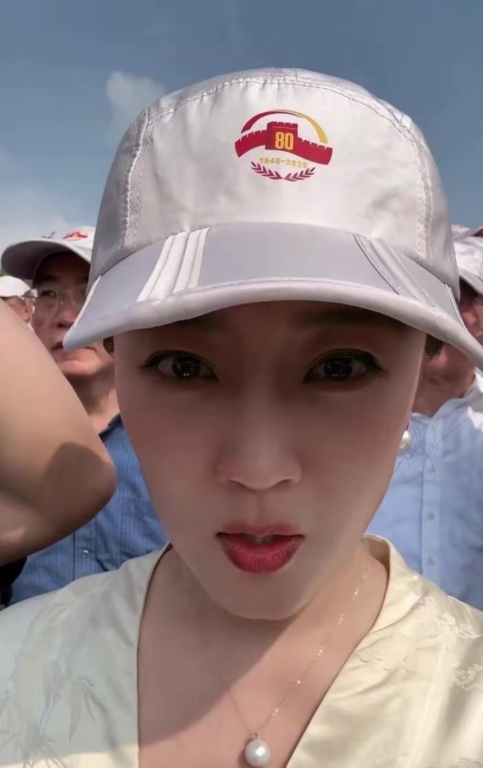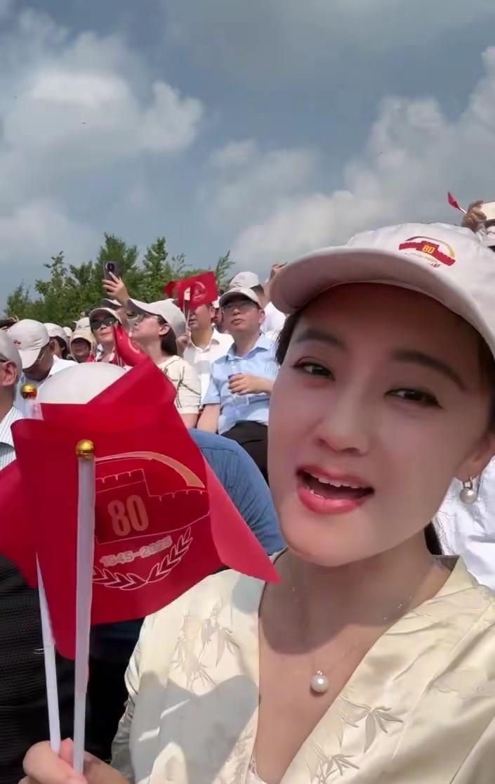 王小玮受邀亲临九三阅兵现场观礼,她身着中式套裙,搭配精致的珍珠耳环,整体造型典雅