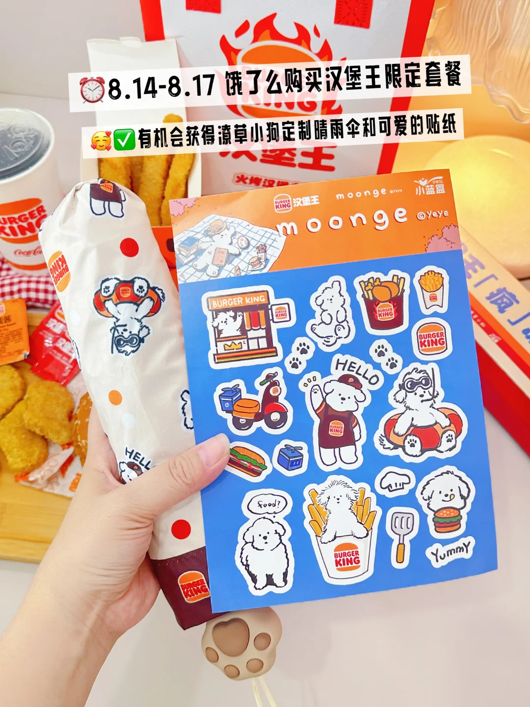 ⏰8.14-8.17 上饿了么购买汉堡王皇金鸡腿堡单人餐,随餐送潦草小狗贴纸(贴纸限量39880份);