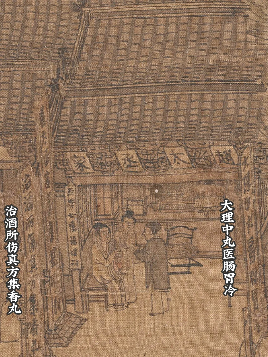 最后,城内街道以赵太丞家收尾,这是医官开得药铺,门前广告了招牌药丸,专治酒伤和肠胃,对爱酒的宋人来说,再好不过了!