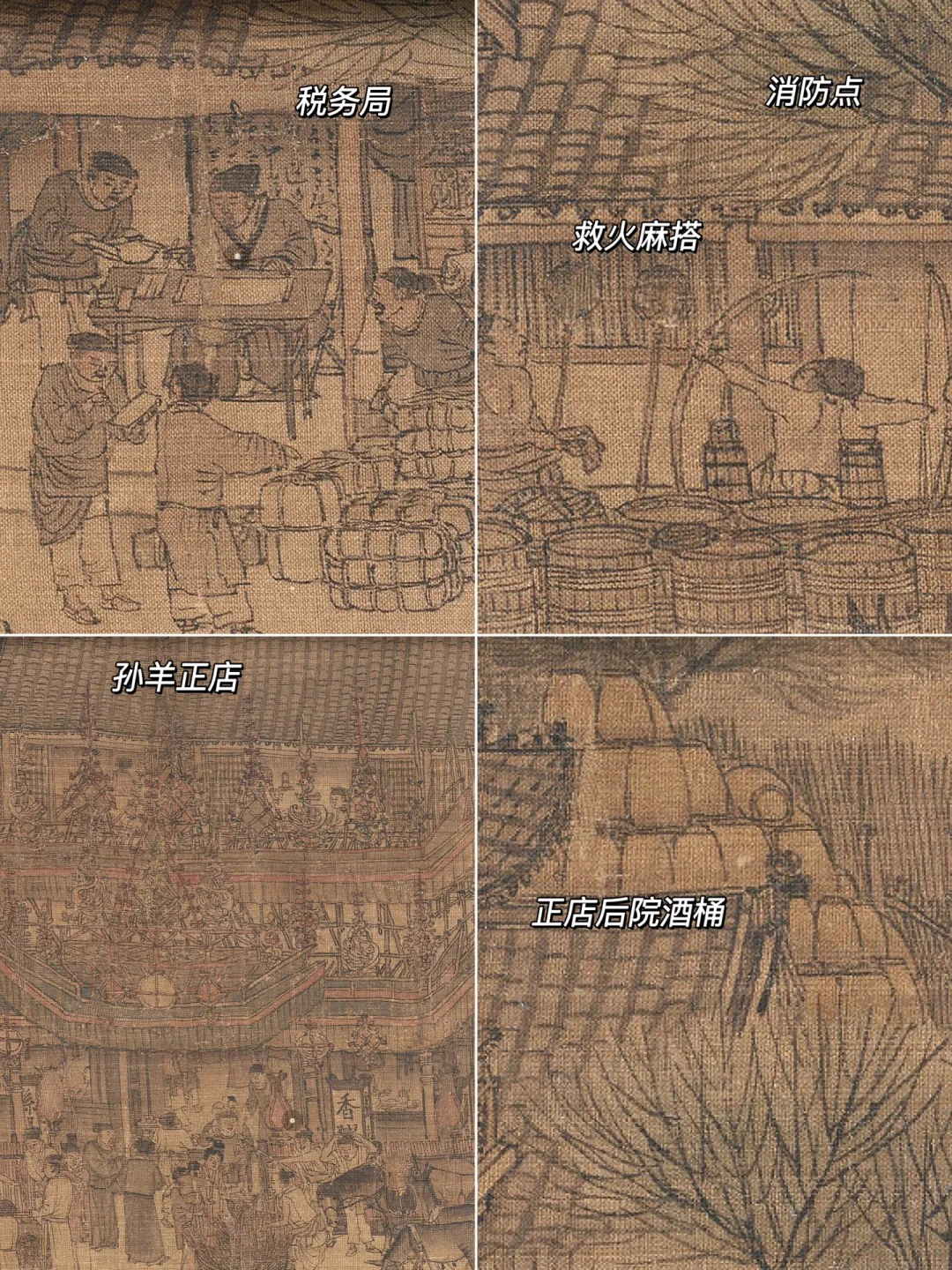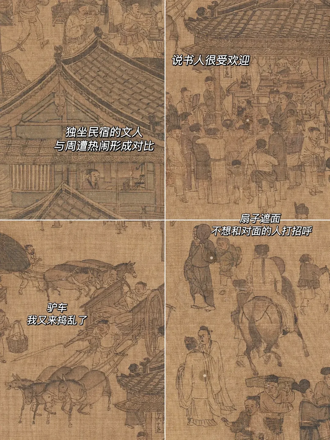🔹以上便是《清明上河图》中的主要场景,当然,还有许多细节等着你去探寻。也不知这热闹中蕴含的危机,这是不是张择端为后人留下的伏笔?