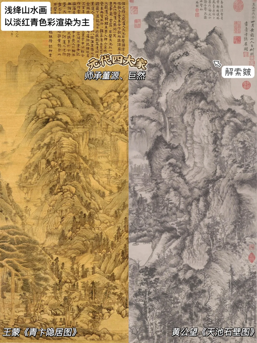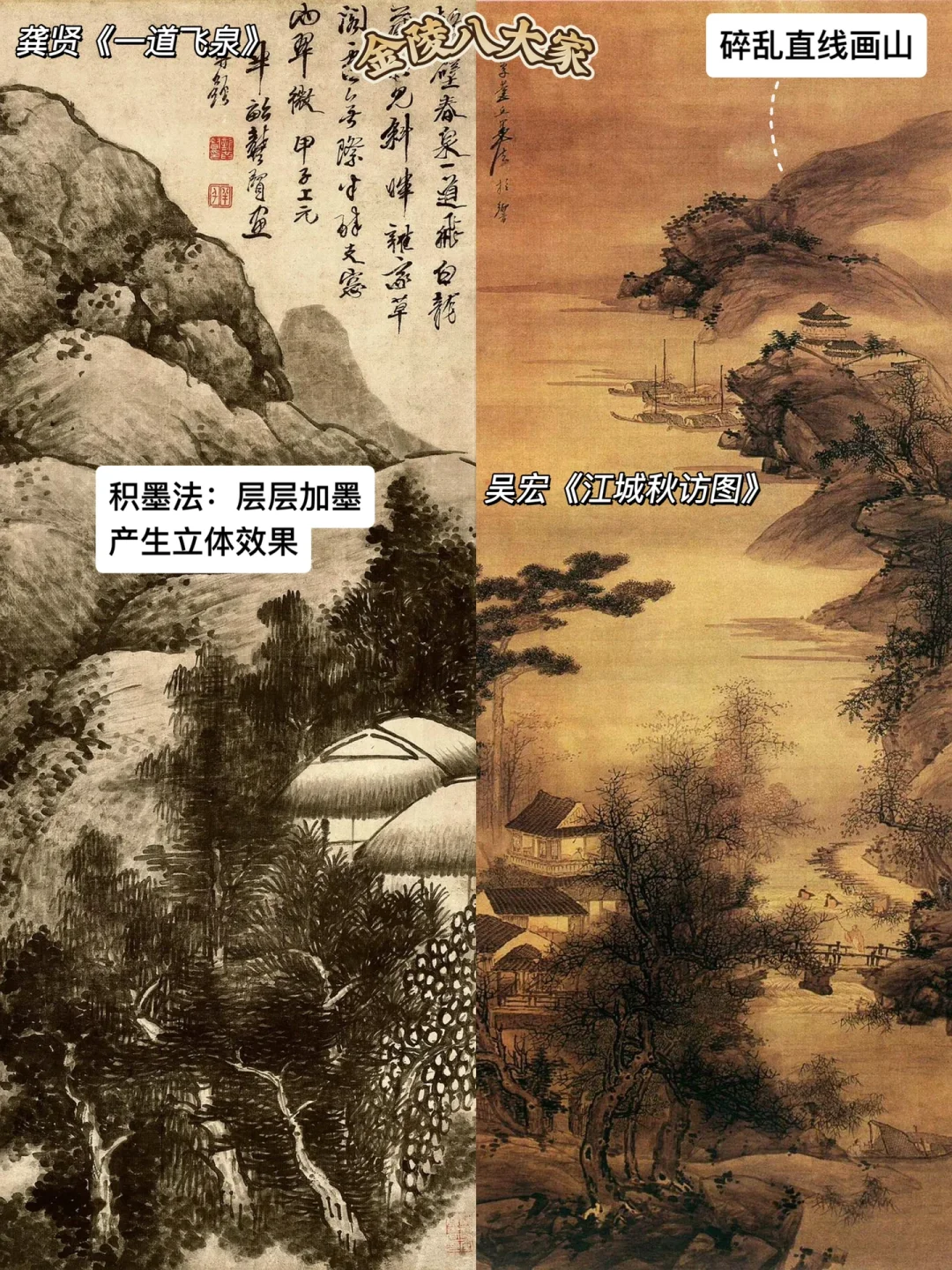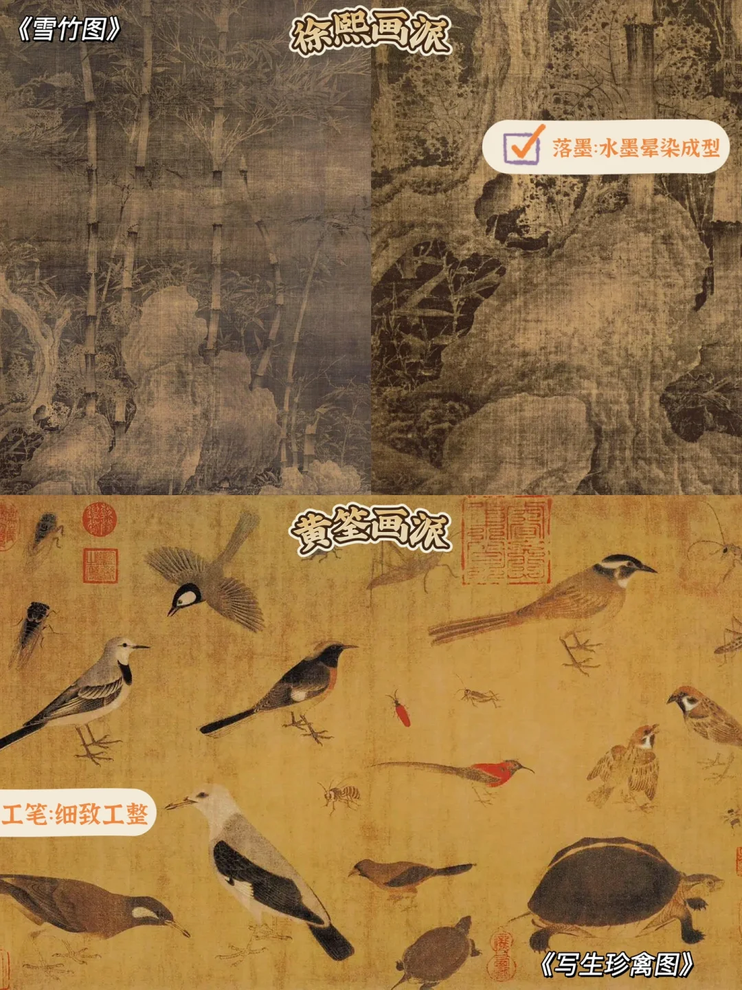✨国画自三国至今历经众多派系,有延续创新,也有对立不同。今天,我们便从12支重要画派入手,带你快速理清它们的关系。 🪷首先是六朝四大家,他们处于社会动荡、寄情宗教的时代,所以善画佛像。曹不兴影响最大,顾恺之、陆探微笔法周密,号为“密体”,张僧繇数笔成型,称为“疏体”。 🦜五代开始,花鸟画独立成科。黄筌画派细笔勾勒,为工笔,设色艳丽而富贵。徐熙画派以色作画,叫“没骨法”,风格清淡而写意。 ⛰山水画也急速发展。北方山水派以多视点融合的坚硬高山为景,荆浩善水晕墨章,施法自然;关仝以钉头皴、雨点皴、条子皴,现山体料峭;北宋李成、范宽均受其影响,风格上一个更深远、一个更雄壮。 🌊南方山水派多为平远、高远构图,呈山势平缓、草木丰润之景。董源创披麻皴展示山石纹理、巨然用点苔描绘远树青苔,北宋米氏父子承其技法,将简略、幽然发挥至极。 🌅时至南宋四家,画风有所改变。李唐创水墨淋漓先河,马远、夏圭喜局部构图,得马一角、夏半边美名,刘松年专小景山水之长,四人作品均意境深远。 🎍到了元代四大家,文人画占据主流,画家师承董、巨,结合诗书印画抒情表志。黄公望创浅绛山水,素雅青淡;王蒙发明解索皴,行笔曲密;倪瓒用折带皴,表现层石;吴镇以渔夫墨竹,一展苍茫。 🏞明代中期,吴门画派承元文人画衣钵,沈周取法王蒙、兼学董巨;文徵明师从沈周,画法粗细皆有;唐寅借鉴南宋院体,风格俊逸;仇英善作青绿山水,雅俗共赏。 👑清朝四王画派深受董其昌影响,他将唐宋院体归为北宗,五代山水、米家父子、元四大家归为南宗,认为北宗不及南宗。 因此王时敏、王鉴、王翚、王原祁四人多为摹古南宗,正统有余,创新不足。 ♣️宫廷以外,多元化逐渐显现。扬州八怪中,郑燮善画竹石;高翔以指为笔;金农好写墨梅;李鱓破笔泼墨;黄慎狂草写意;罗聘喜鬼向佛。 🗺金陵八大家中,龚贤主用积墨法;吴宏以碎乱直线画山;邹喆最近明人气格,谢荪用笔非常工细,他们画风不同,但因地理位置相近,自成一派。 🎨最后要说的海派,由大写意水墨和重彩组成。前期海上三任,任熊精于绘人;任薰工写兼善,任颐笔墨多变。 后期海派四杰,除去任颐,还有以拙取巧的虚谷、湿笔作竹的蒲华,以及追求金石书画的吴昌硕。 他们共同为近代国画掀开新的序章。