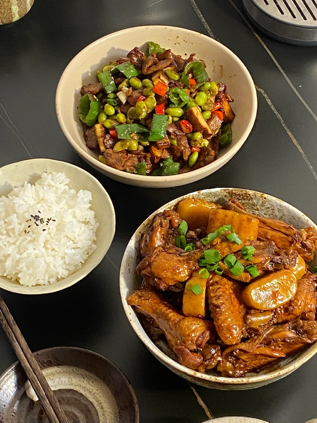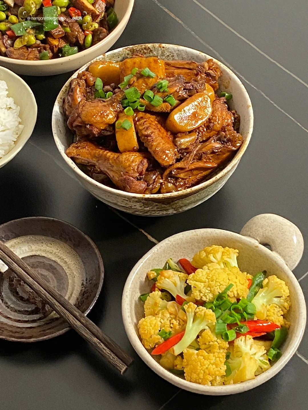 今日菜谱📜年糕鸡翅 牛肉炒香干 香辣花椰菜