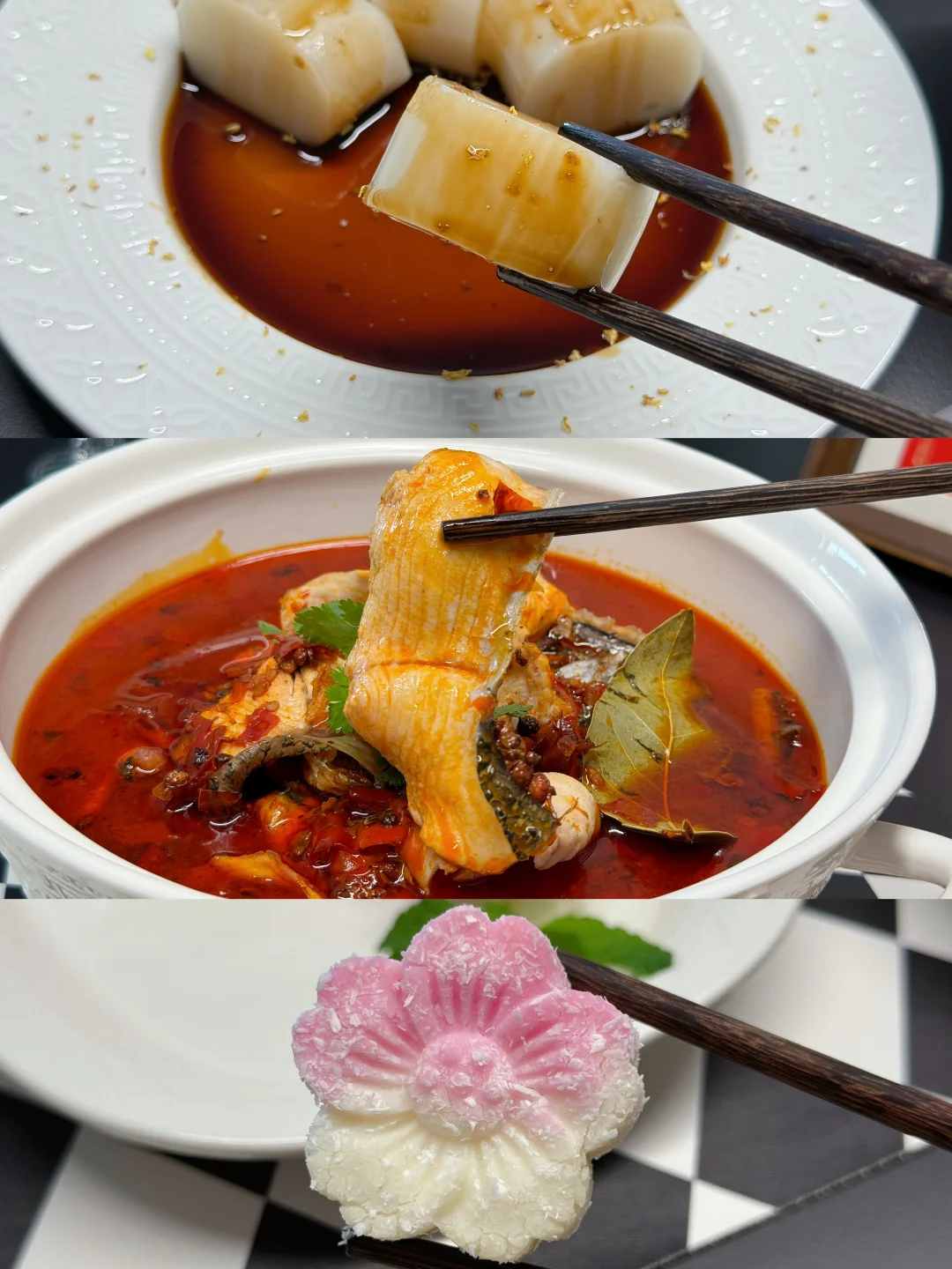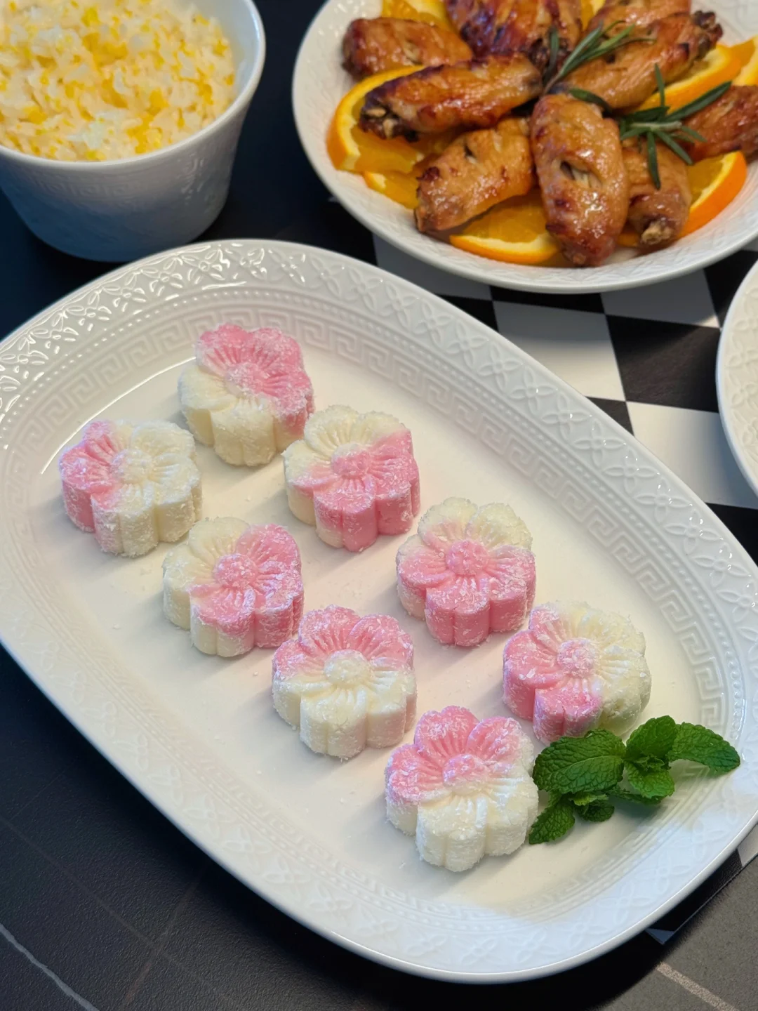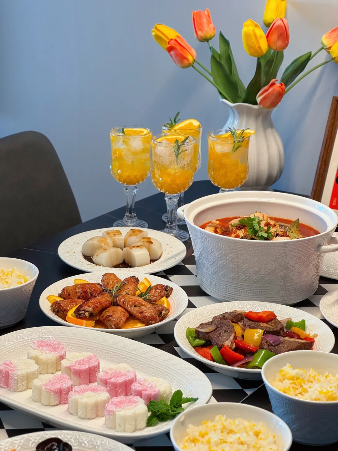 春天是远道而来的浪漫~约上朋友共享一桌春日里的漂亮饭,赴一场春天的约会! 【今日菜单】 水煮鱼 樱花山药糕 香煎牛仔骨 橙香烤鸡翅 炒什锦 豌豆苗拌豆腐丝 桂花年糕 草莓果切