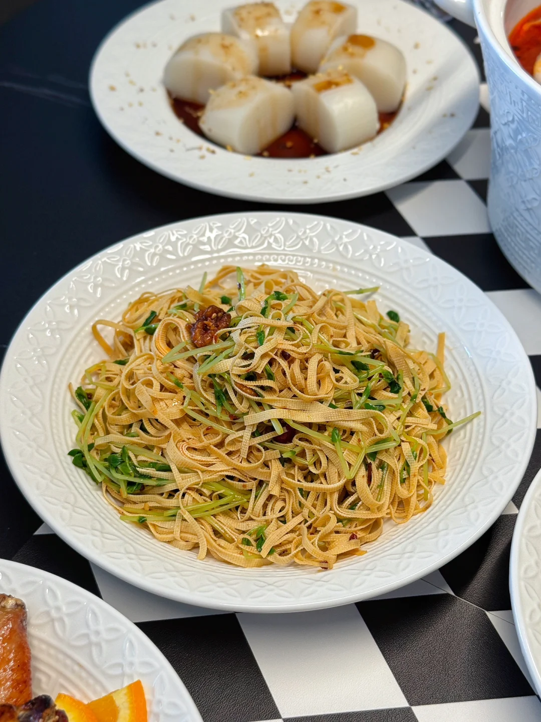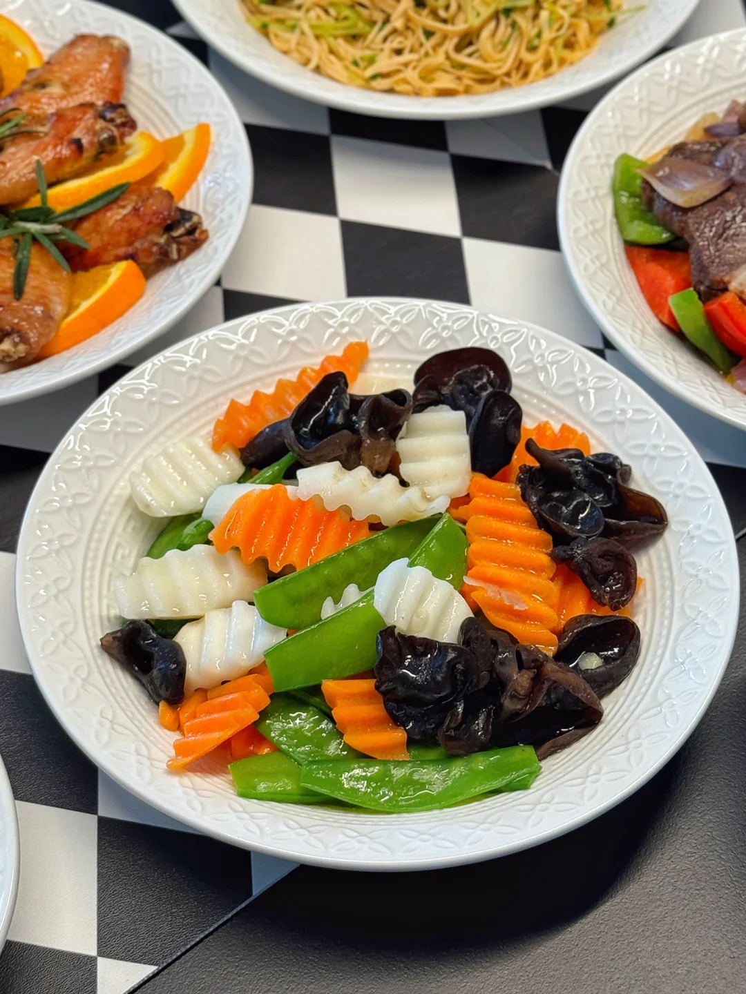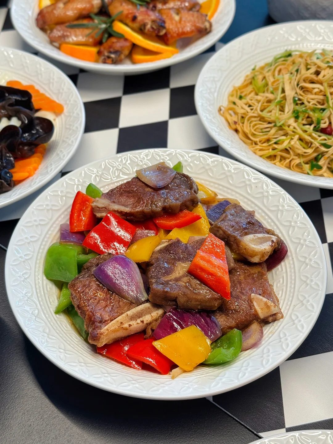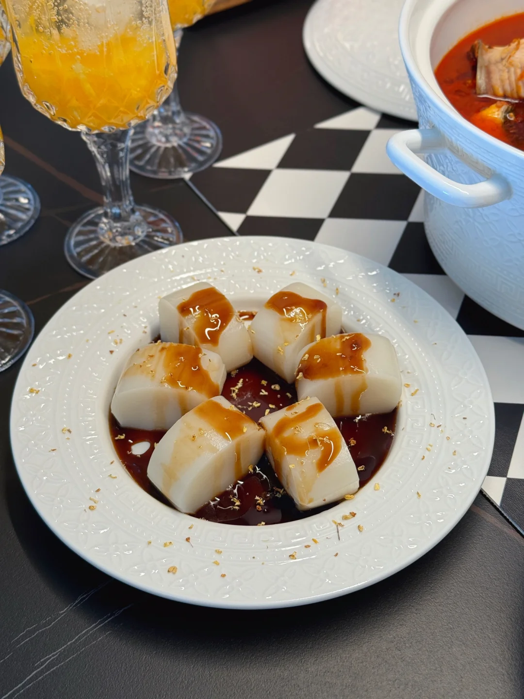 春天是远道而来的浪漫~约上朋友共享一桌春日里的漂亮饭,赴一场春天的约会! 【今日菜单】 水煮鱼 樱花山药糕 香煎牛仔骨 橙香烤鸡翅 炒什锦 豌豆苗拌豆腐丝 桂花年糕 草莓果切