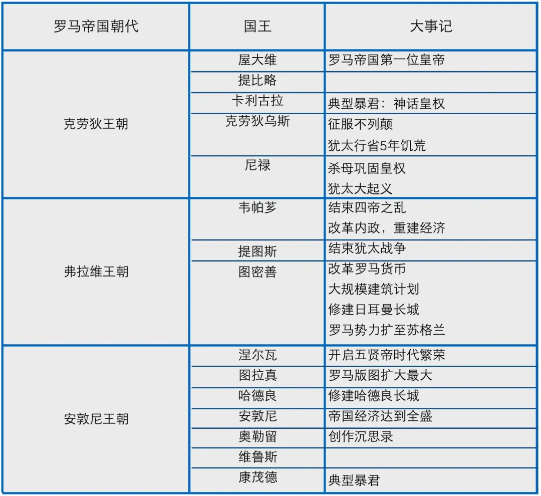 其中图拉真将版图扩到历史最大、安敦尼令帝国达到全盛,