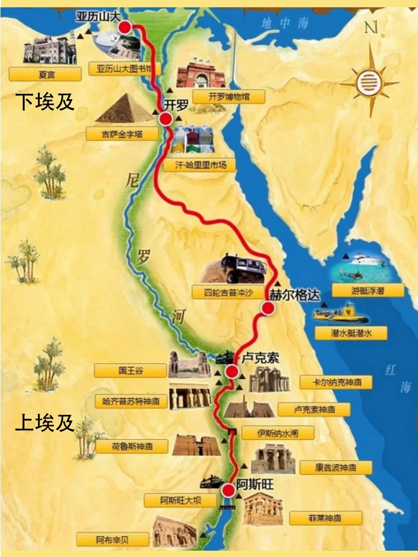 说到埃及历史,得先了解上埃及和下埃及,上埃及是南边的尼罗河谷,之外就是沙漠,热且干燥。下埃及是北边的尼罗河三角洲,土地肥沃,是政治中心,这俩部分组成了埃及领土,可自古纷争不断,光分裂就有三次。