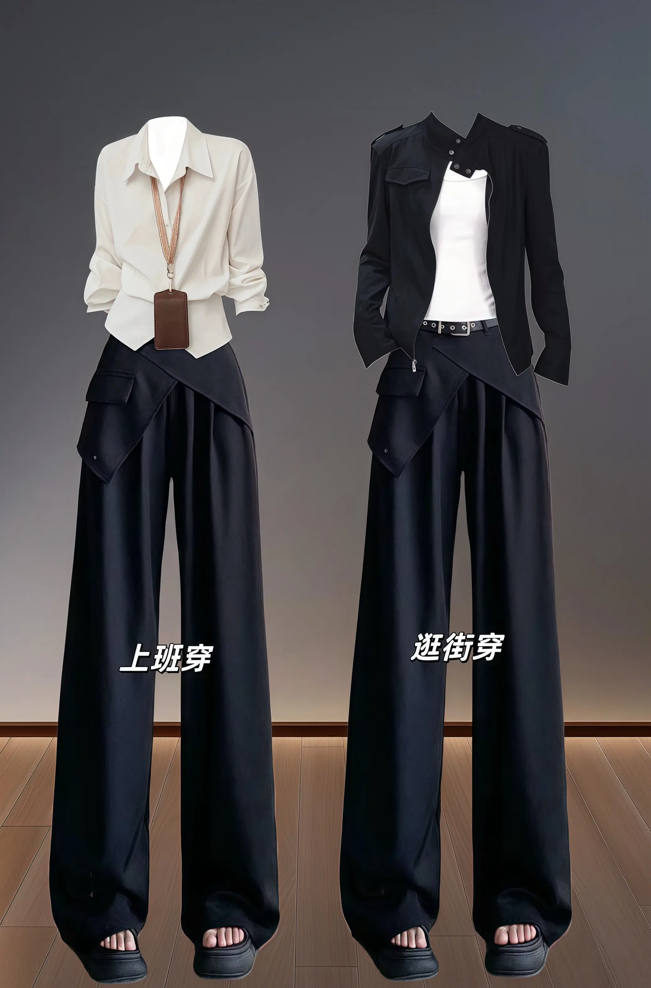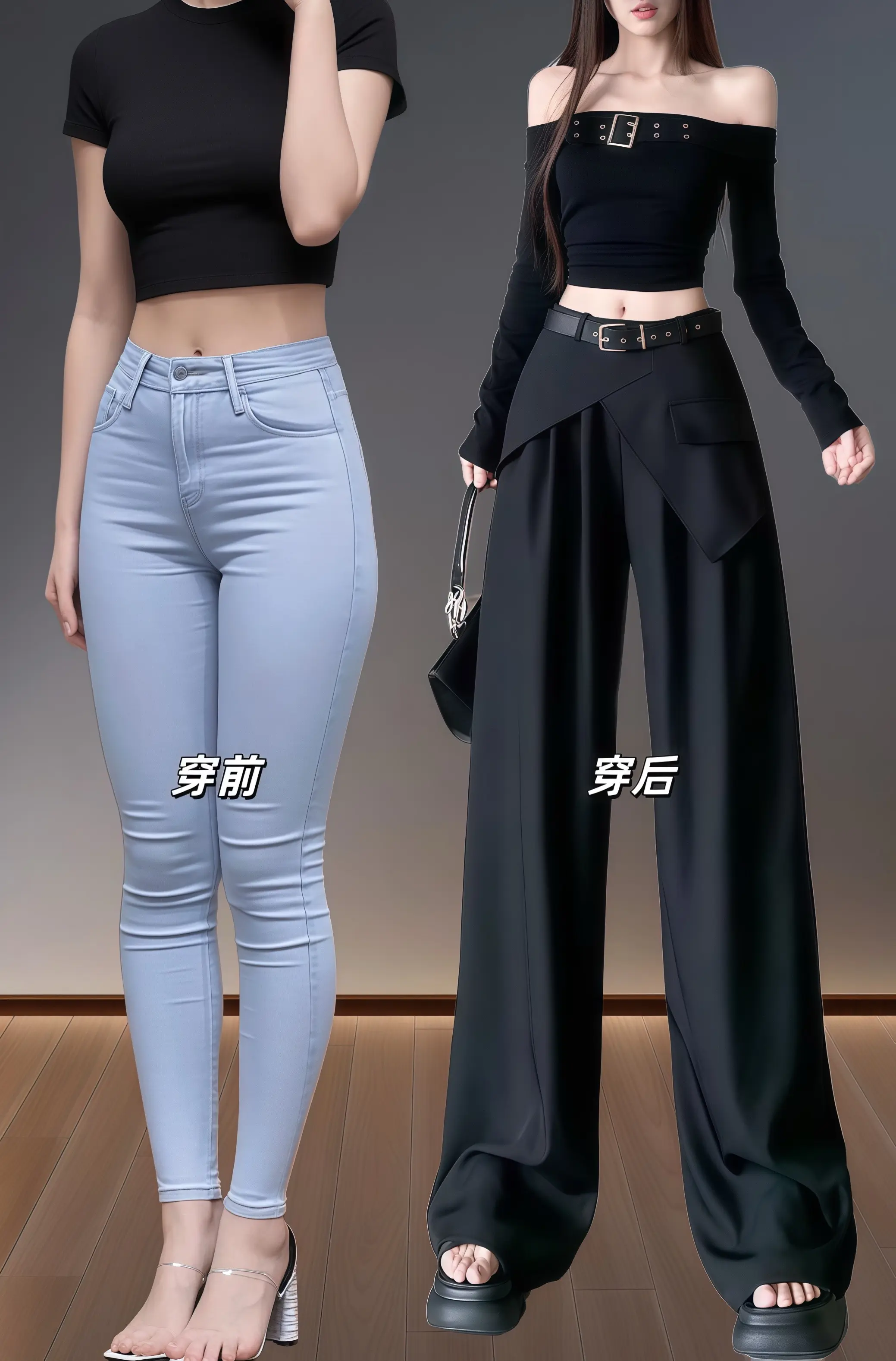 早秋新宠来啦!这款拼接假两件西装阔腿裤,设计感满满。拼接元素打破常规,独特吸睛,穿上绝不撞款。假两件设计,丰富层次,时髦又洋气。阔腿版型超藏肉,轻松遮住腿上小瑕疵,还能拉长腿部线条,显高又显瘦。无论是通勤还是日常出街,搭简约上衣就能轻松拿捏时尚,轻松打造早秋氛围感。