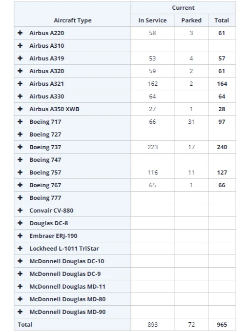 目前,达美航空拥有965架飞机。