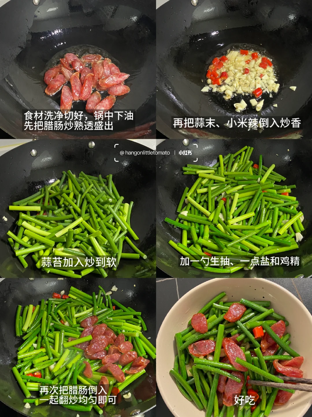 蒜苔|腊肠|蒜末|小米辣