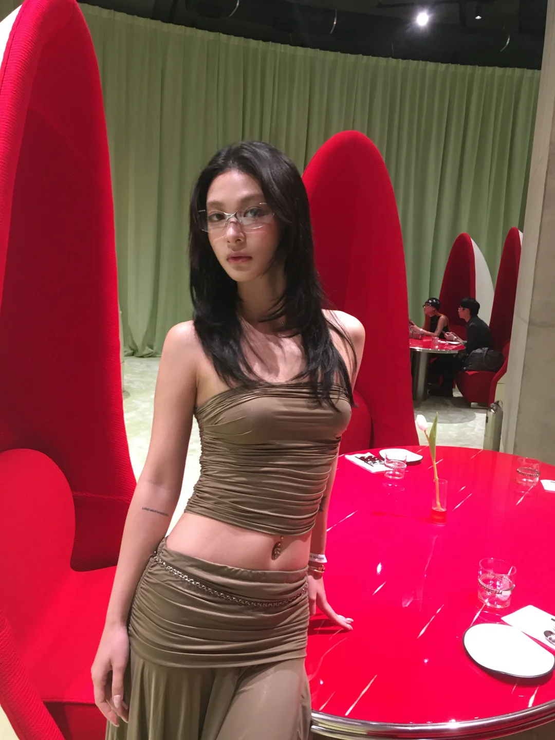NUDAKE楼层大面积橄榄嫩绿 颜色很美 很古典 但搭配超大的落地窗帘 像飞行舱的座椅 OK 感觉就是在未来电影现场 甜品审美和味道都很棒 不过威士忌味道的茶有让我头晕哈哈哈 😢