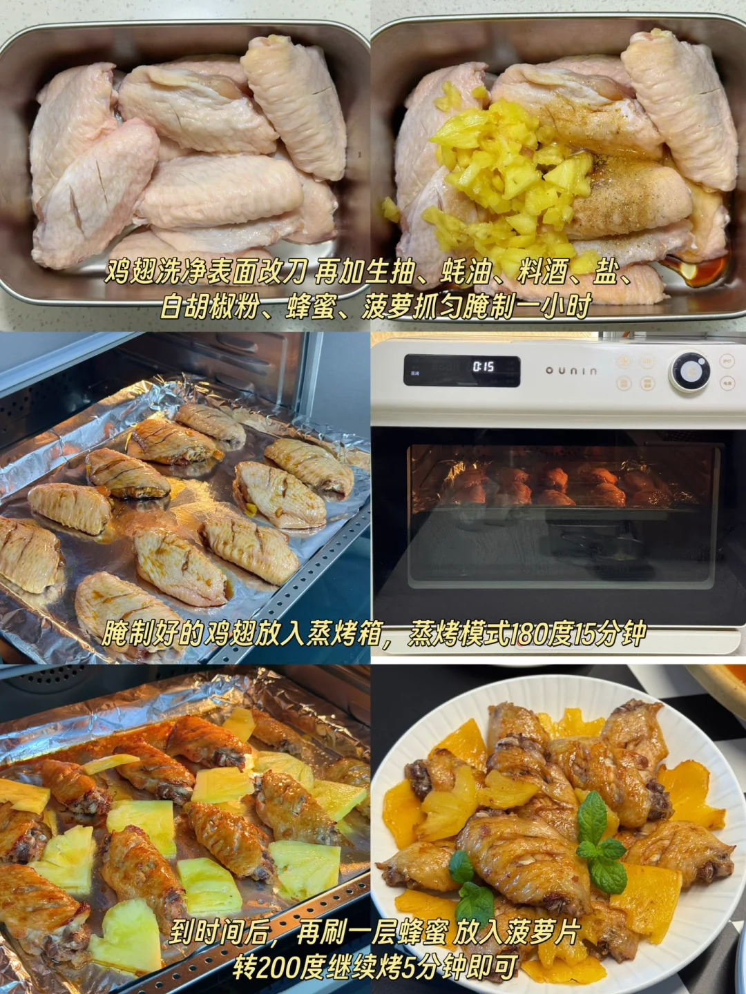 [三R]菠萝烤翅:清甜的菠萝香好吃到嗦手指,蒸烤箱嫩烤出来的鸡翅一点也不柴,外面金黄酥脆里面鲜嫩多汁 全家爱吃🥰